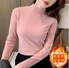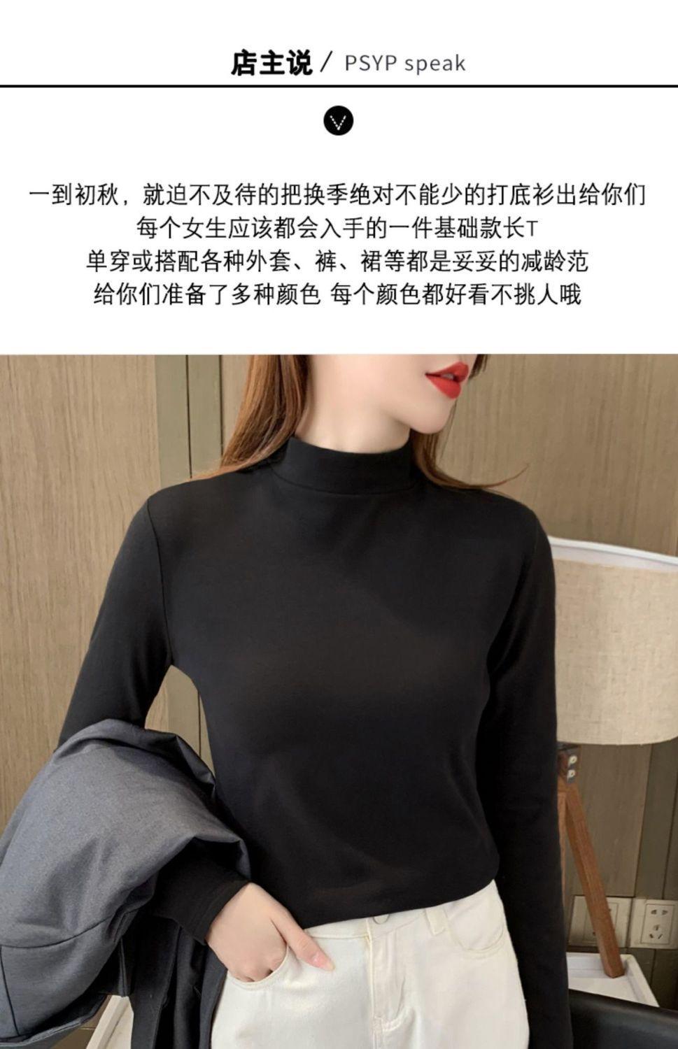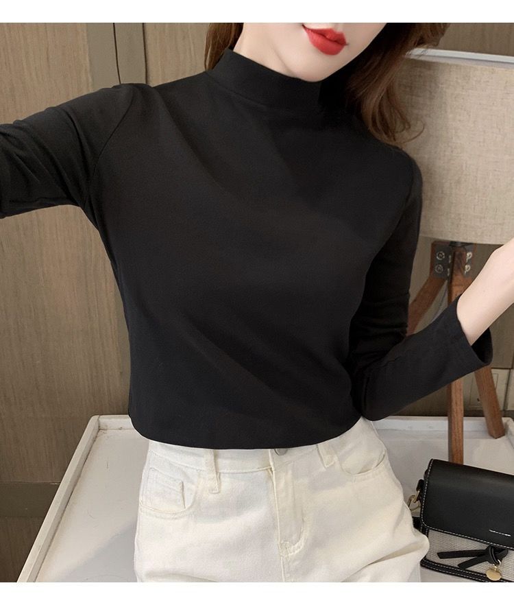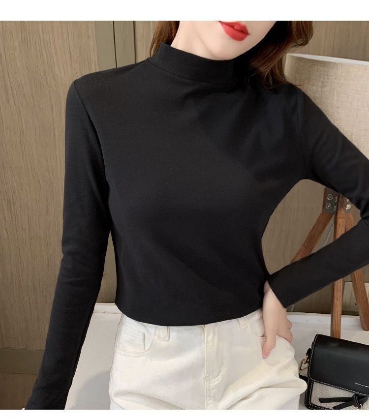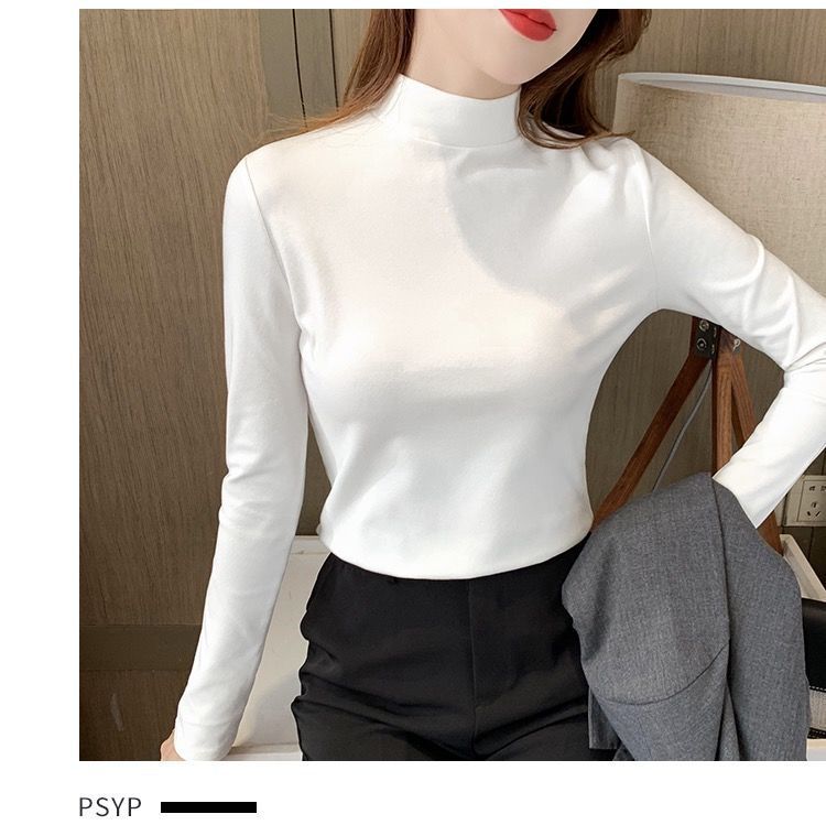 Camiseta de manga larga para mujer, de terciopelo de doble cara, con cuello medio alto y forro polar, gruesa y cálida, ajustada, combinable con todo, para otoño e invierno.