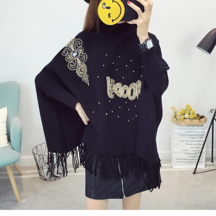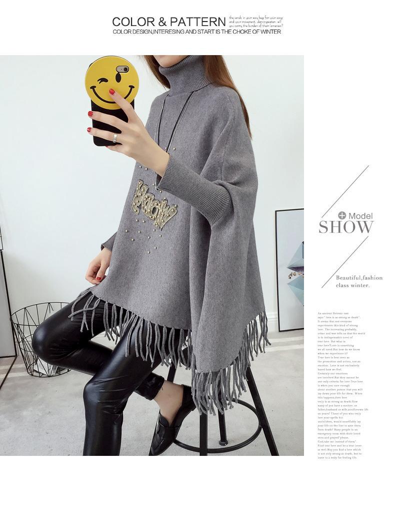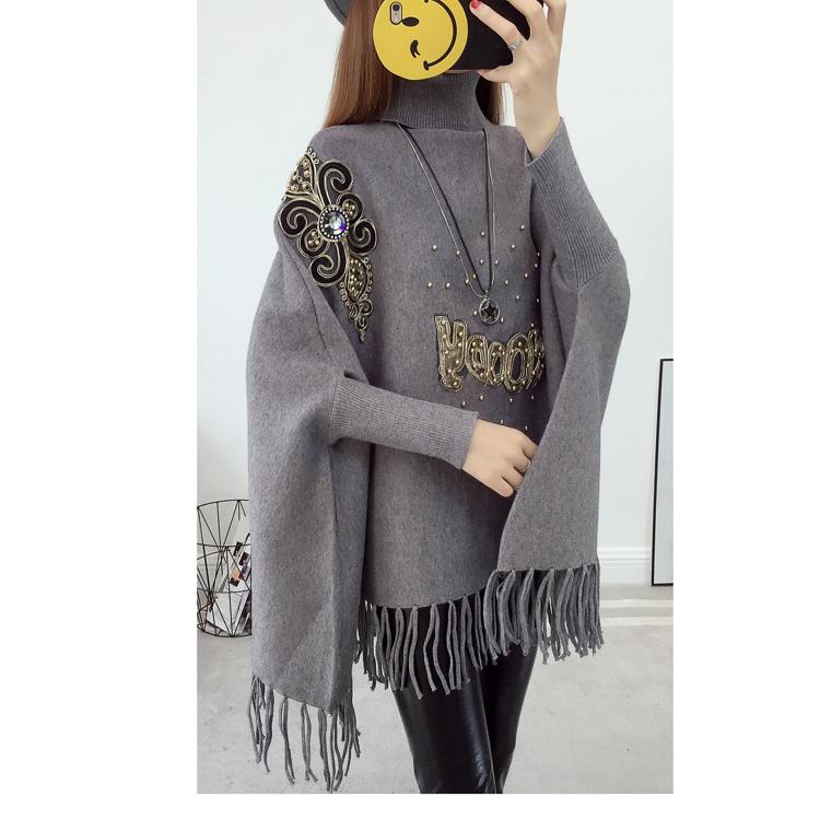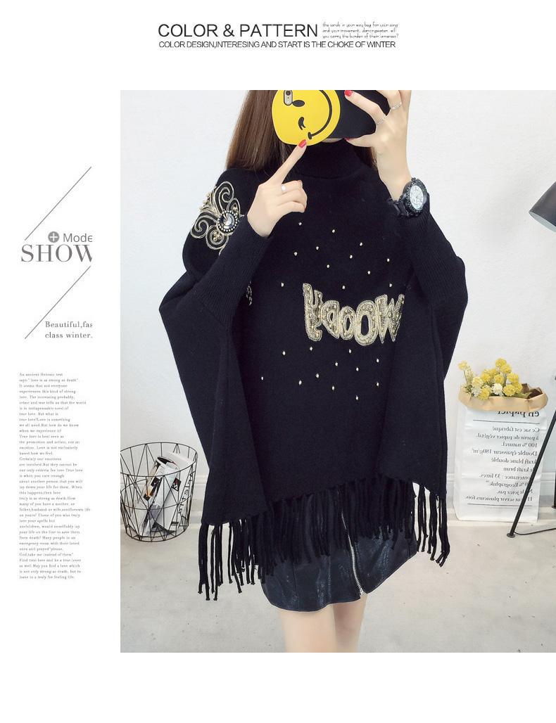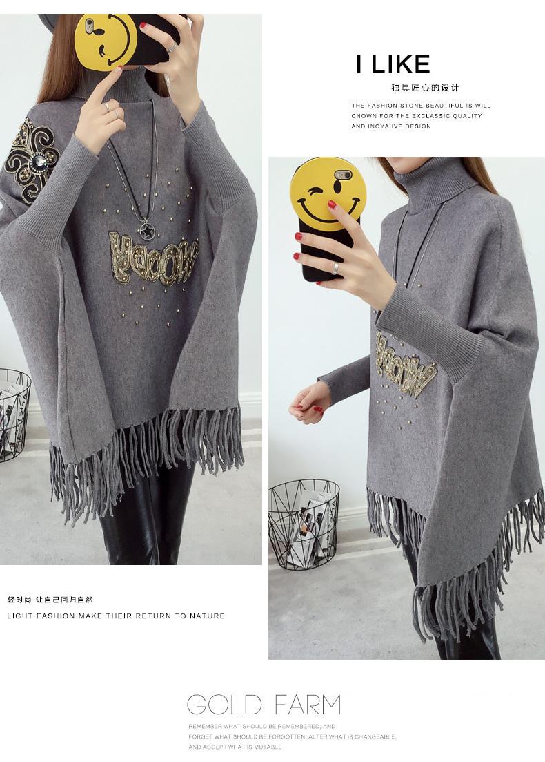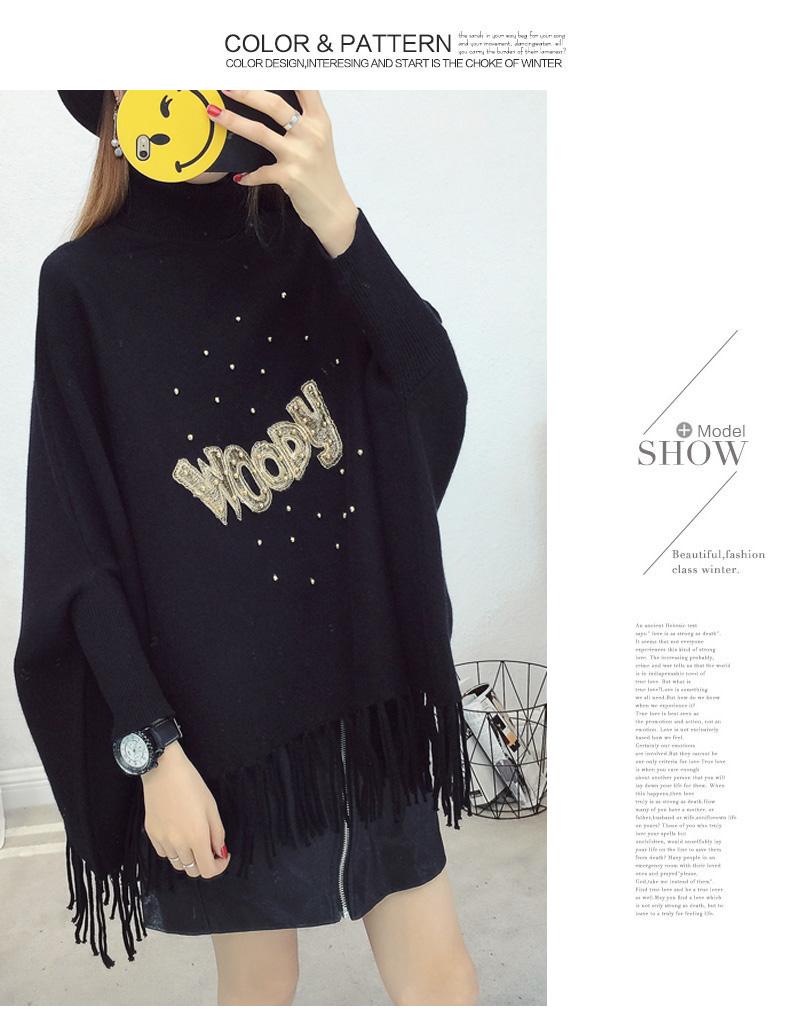 525# Otoño e Invierno nuevo suéter holgado con mangas de murciélago para mujer, abrigo con cuello alto y borlas bordadas