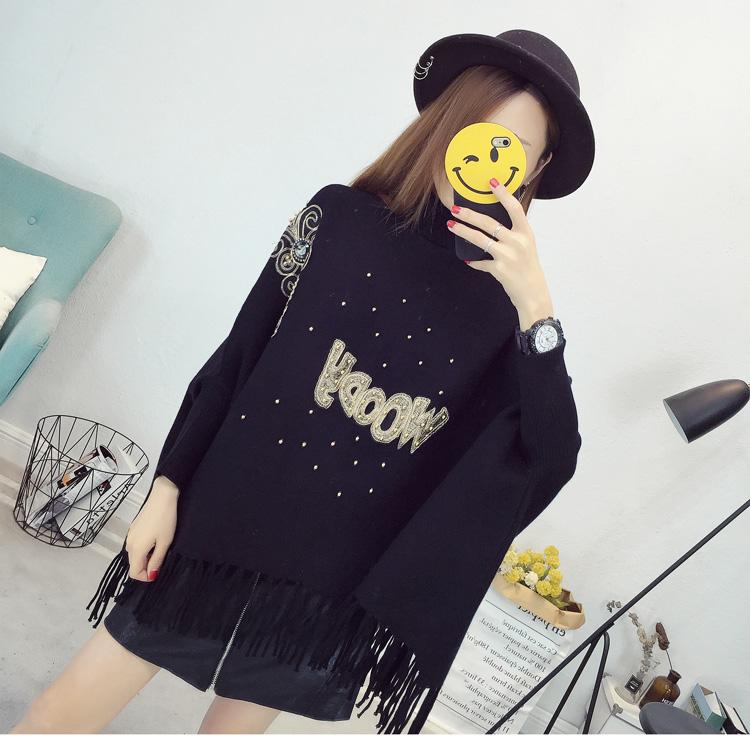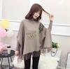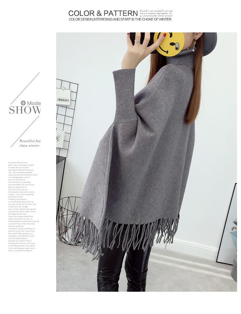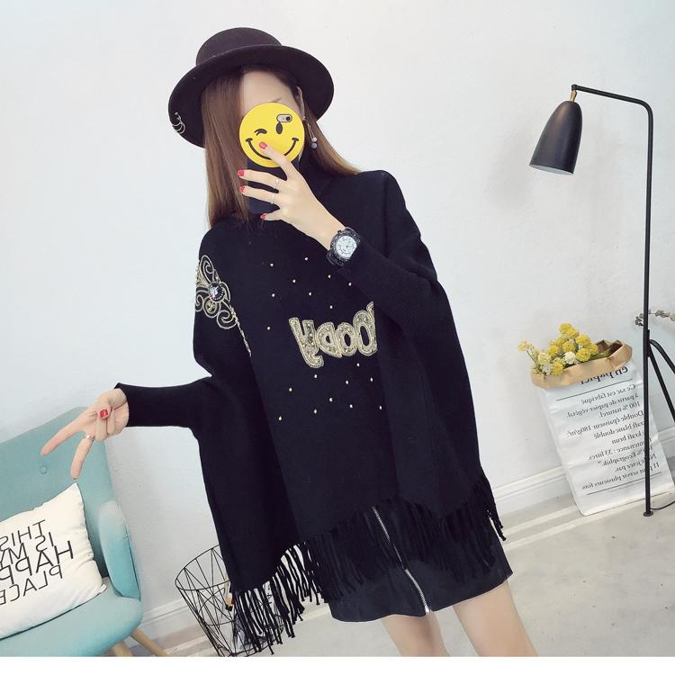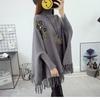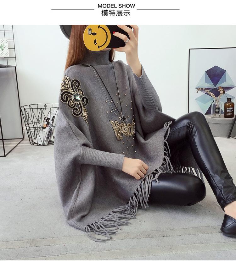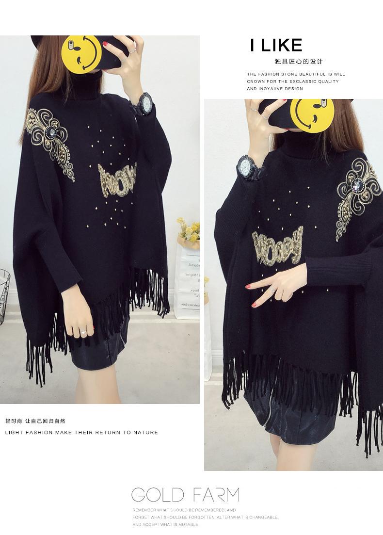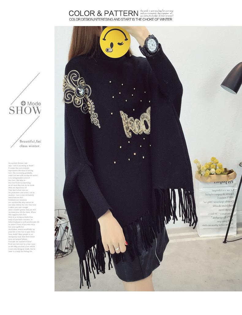 525# Otoño e Invierno nuevo suéter holgado con mangas de murciélago para mujer, abrigo con cuello alto y borlas bordadas