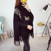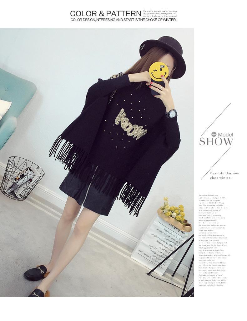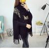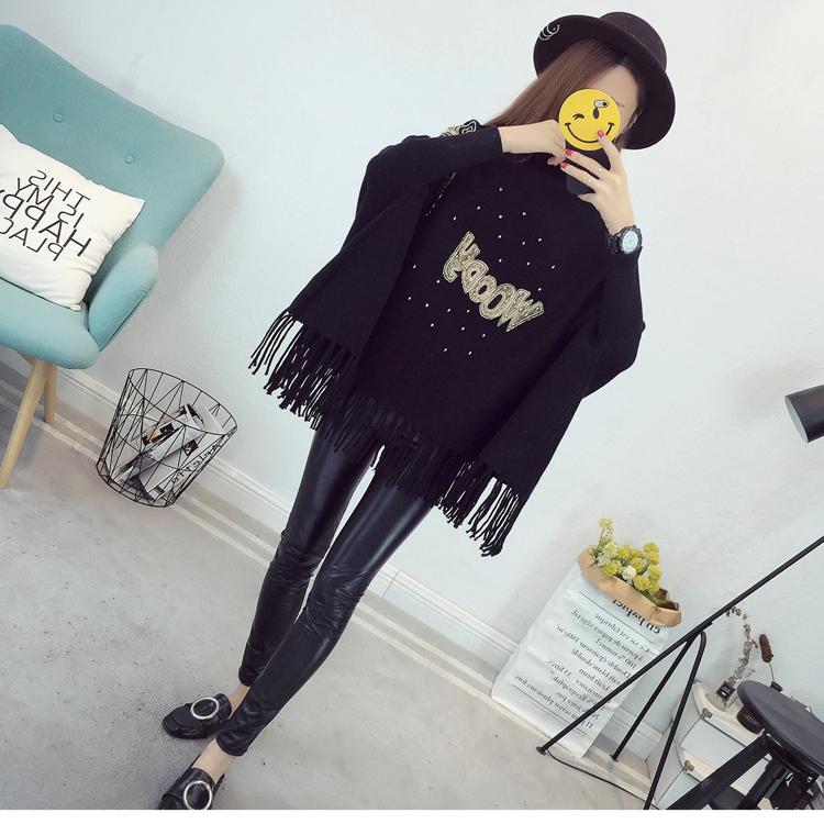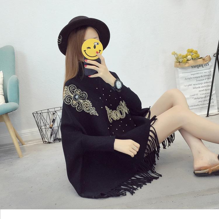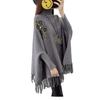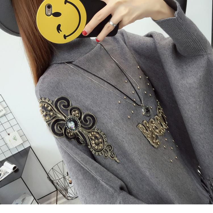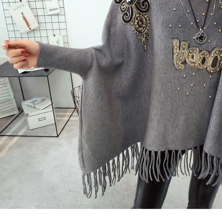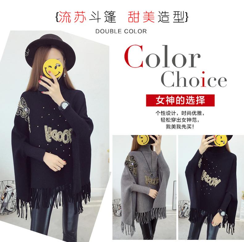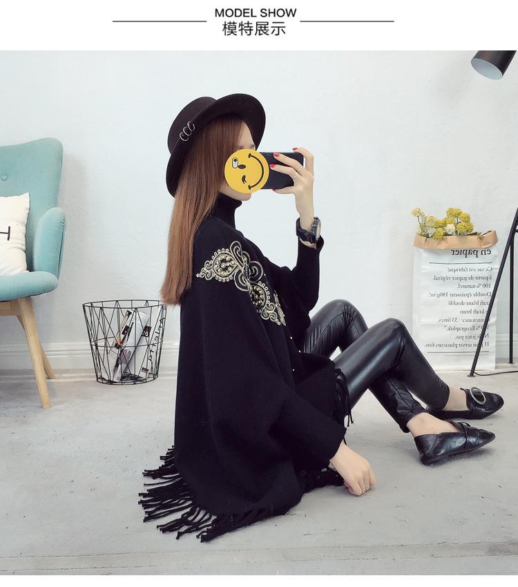 525# Otoño e Invierno nuevo suéter holgado con mangas de murciélago para mujer, abrigo con cuello alto y borlas bordadas