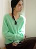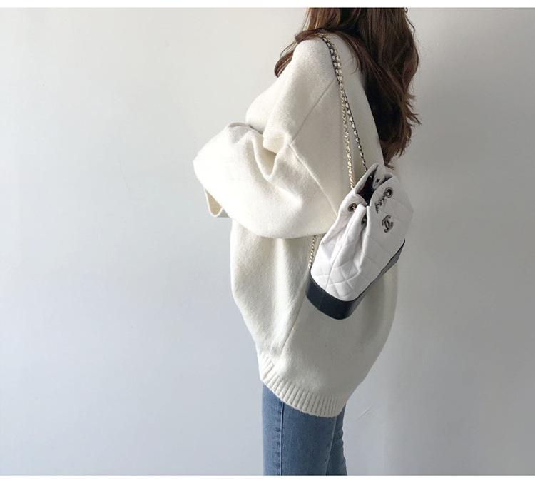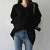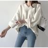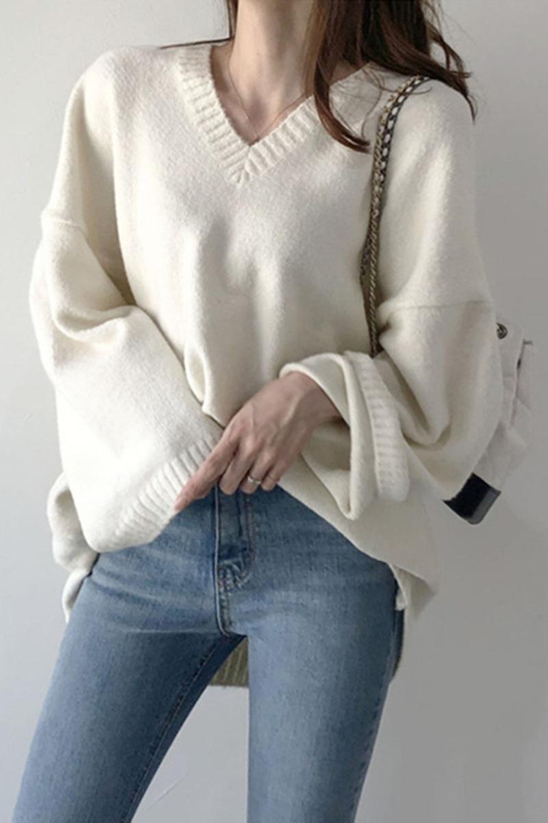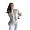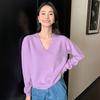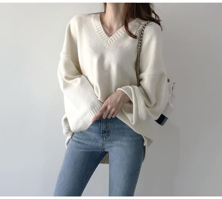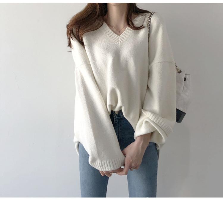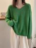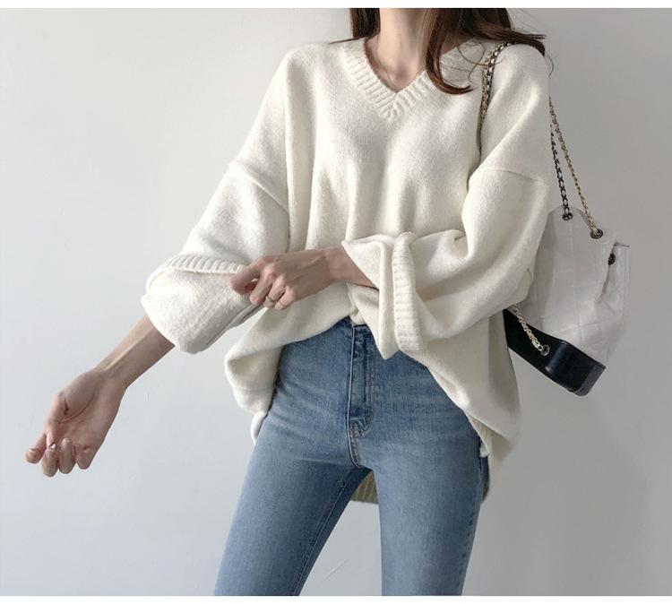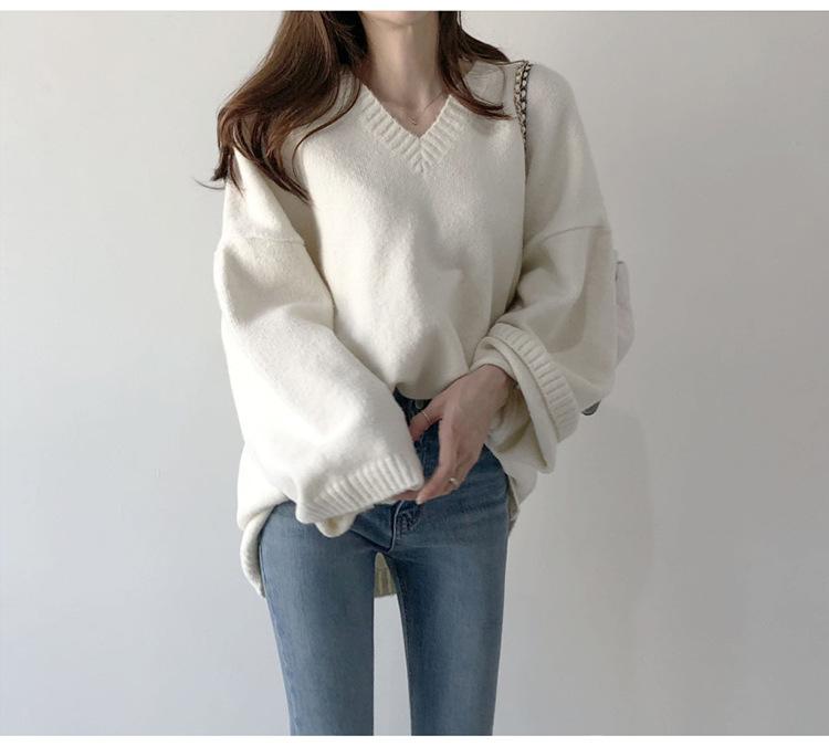 Suéter de Cuello en V Holgado de Color Puro Tejido para Mujer Otoño e Invierno 2025 Nuevo Estilo Estilo Perezoso Tejido Exterior de Largo Medio