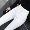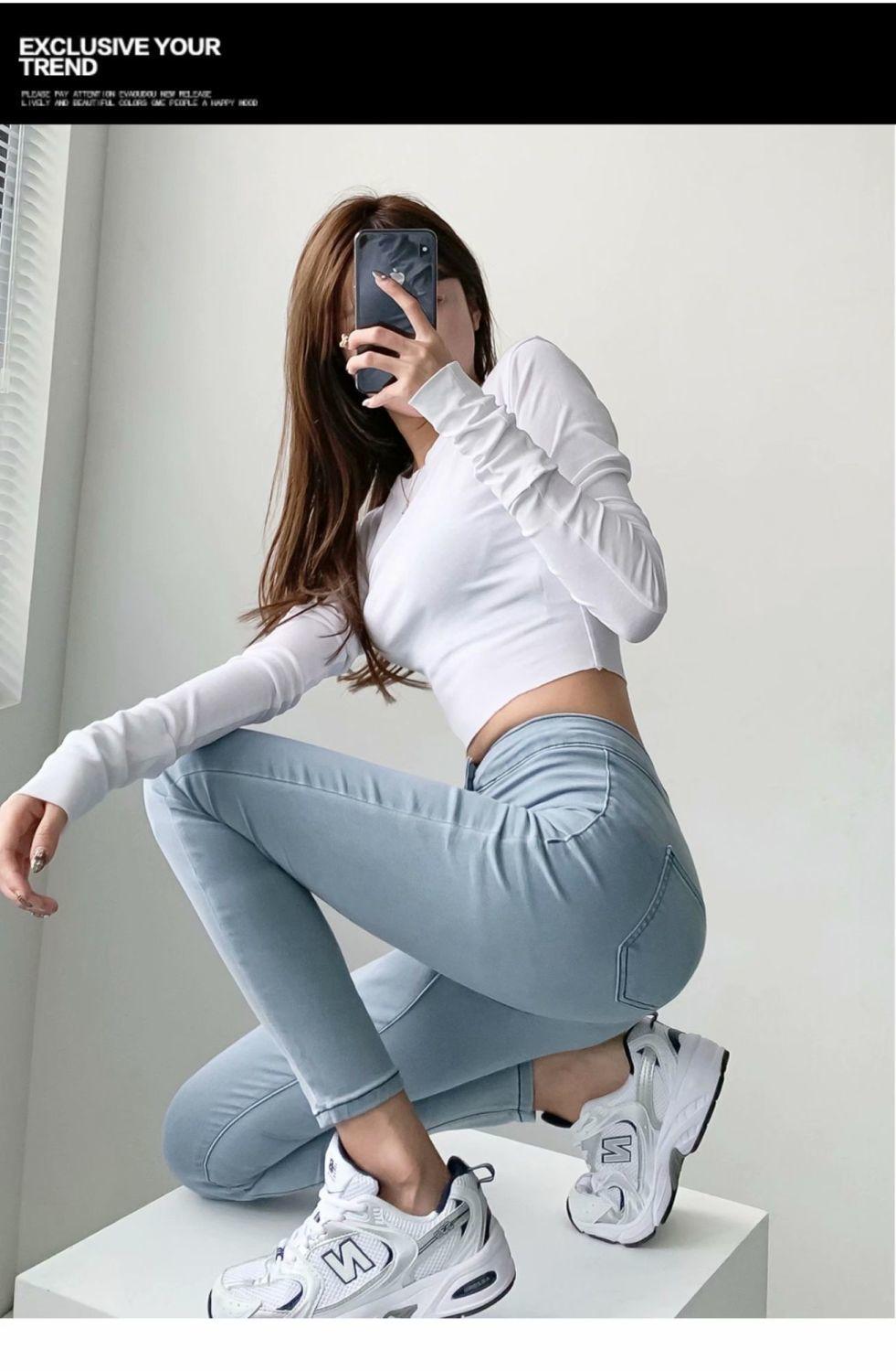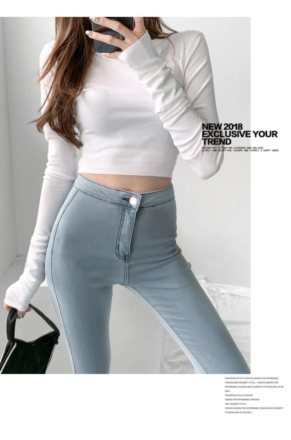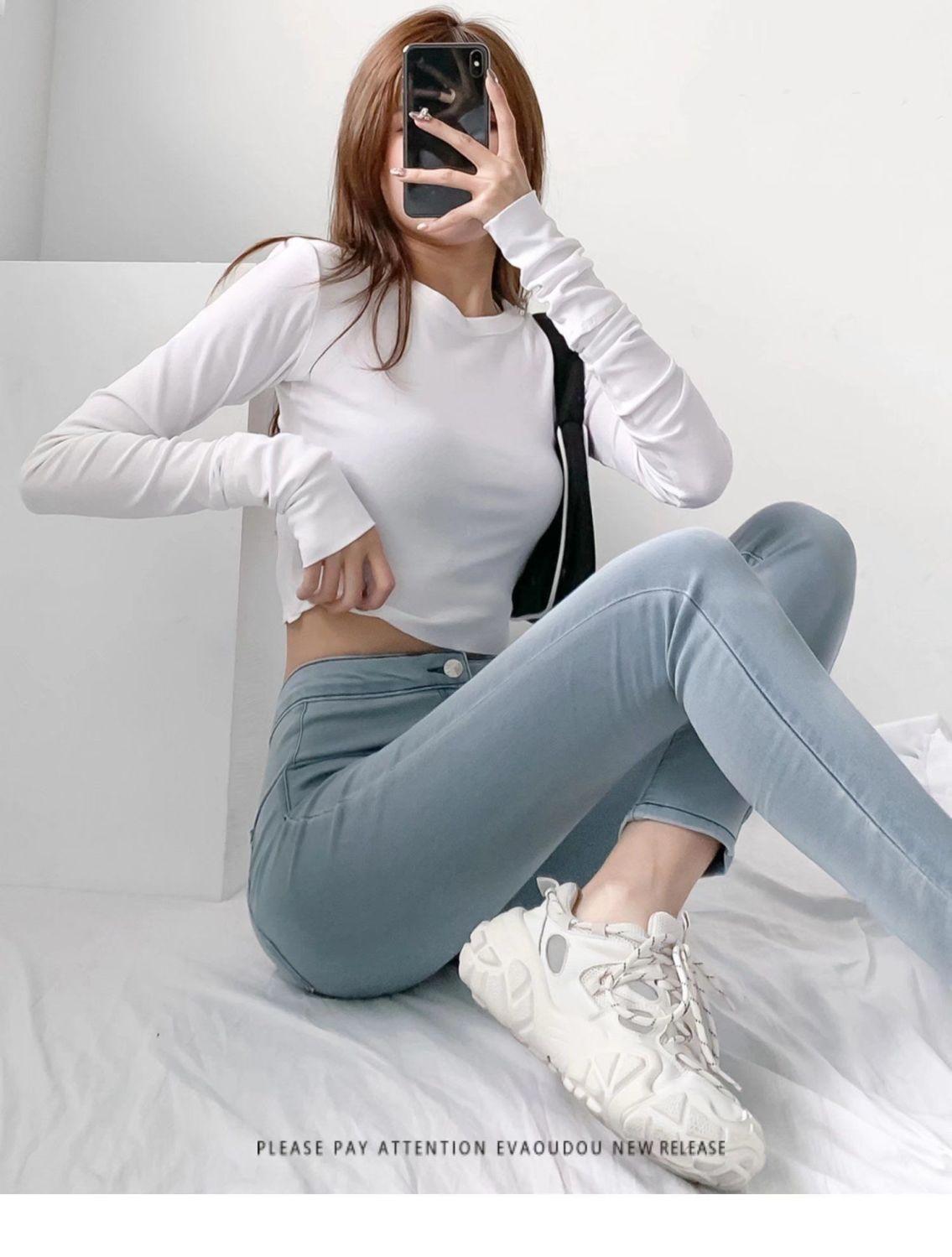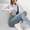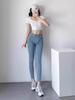 Pantalones pitillo de mezclilla retro de color claro para mujer, nuevos pantalones pitillo de cintura alta, adelgazantes, casuales, combinables y a la moda.