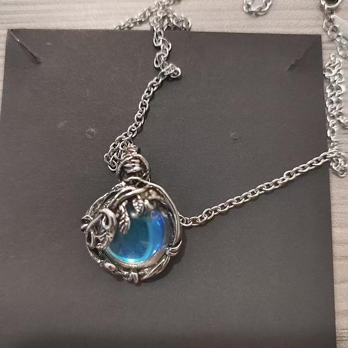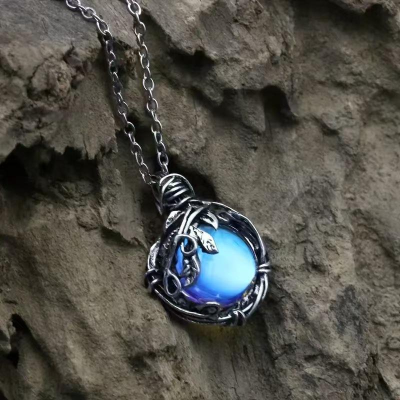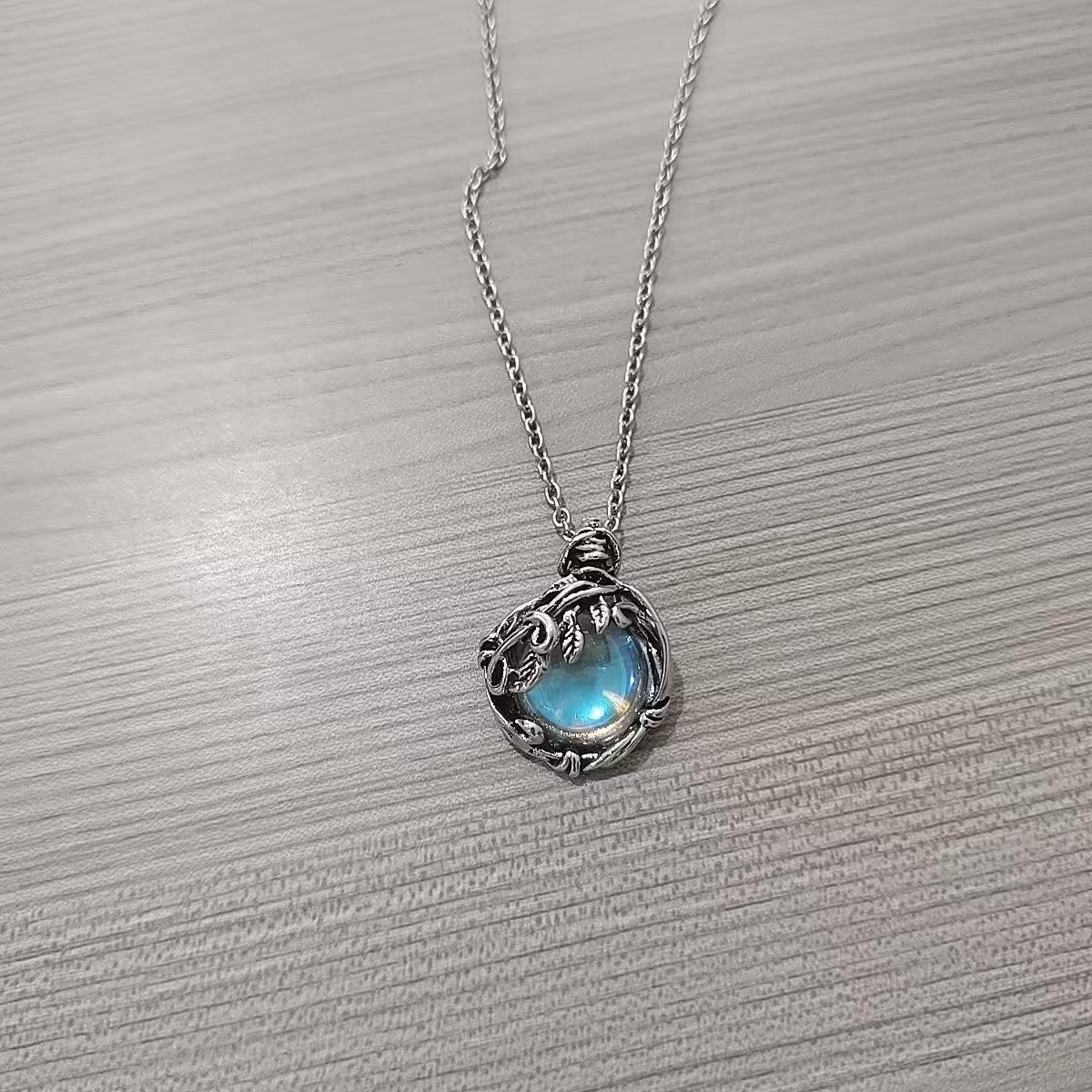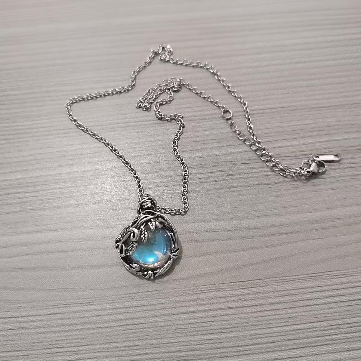 Colgante de piedra lunar de estilo frío, collar bohemio con hojas retro envueltas en ratán, accesorios de moda sencillos.