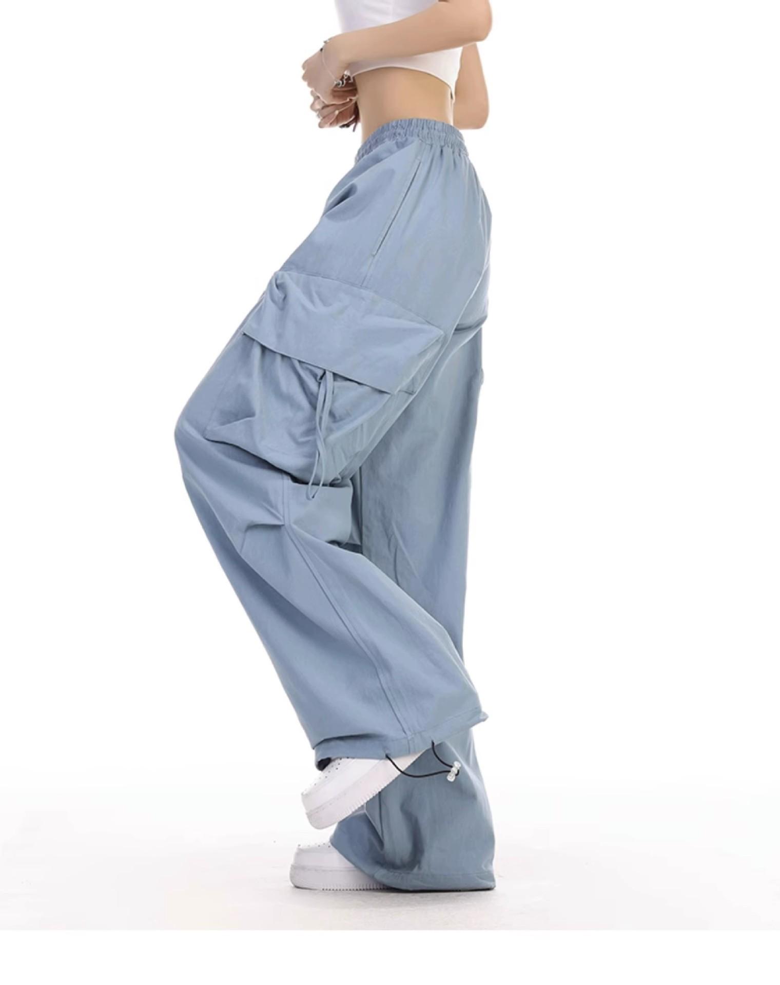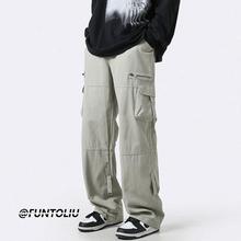 Overol verde claro multibolsillos para hombre otoño tendencia estilo japonés pantalones casuales holgados rectos nicho cremallera pantalones de barrido