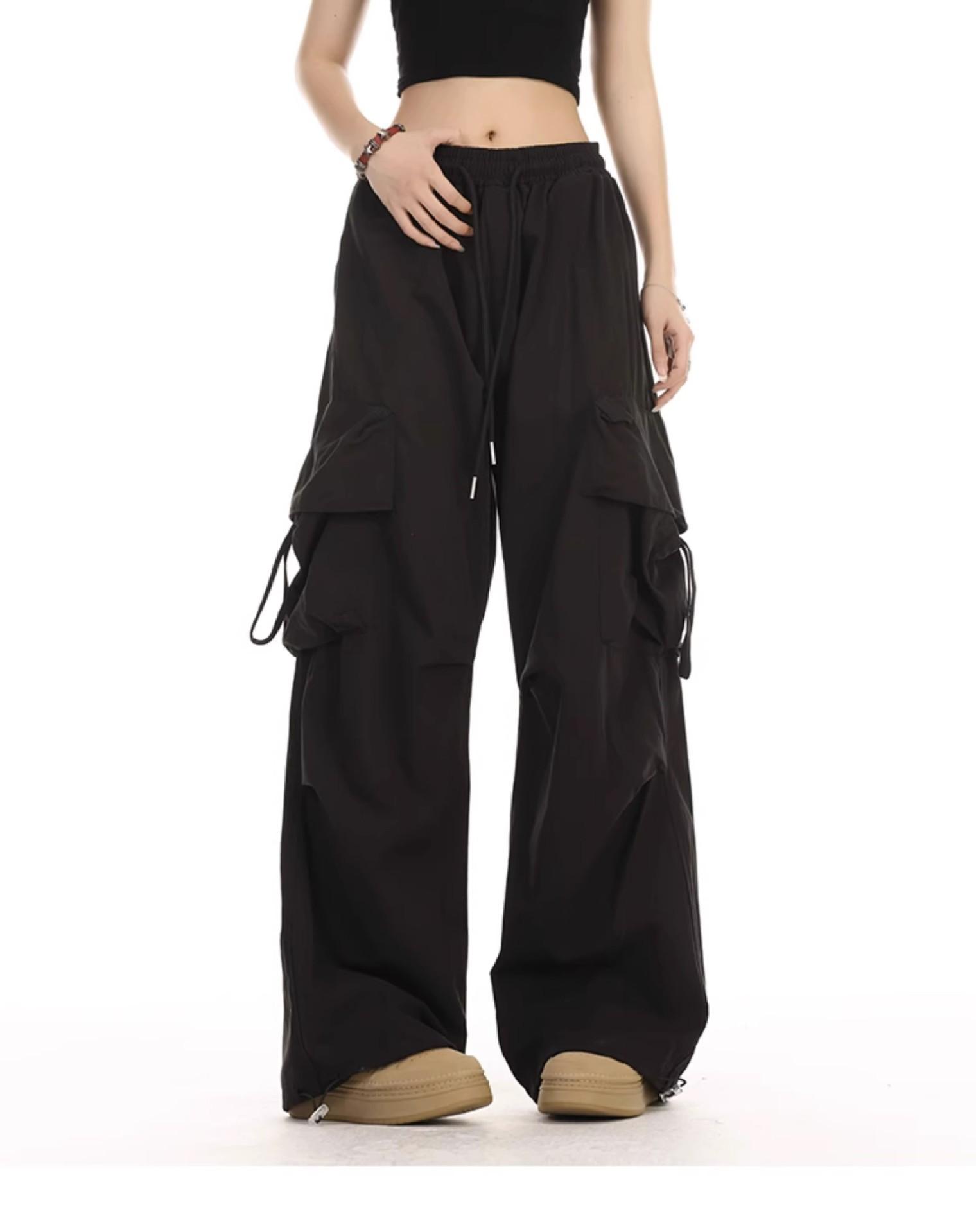Jeans para hombre primavera estilo japonés ins tendencia holgados callejeros casuales cordón rectos drapeados pierna ancha pantalones largos