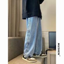 Jeans abotonados para hombre modernos rectos coreanos holgados tendencia estudiante ins pierna ancha casual pantalones de papá