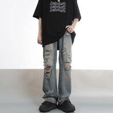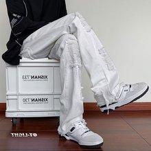 Jeans de calle alta europeos y americanos con agujeros lavados viejos para hombre, pantalones rectos holgados ajustados de estilo urbano moderno hiphop