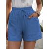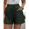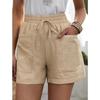 Pantalones cortos de algodón y lino con cordón de cintura alta para mujer, informales, a cuadros, para primavera y verano de 2023, con envío transfronterizo a Europa y América, de Amazon.