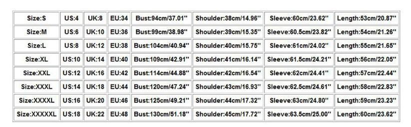 S, M, L, XL, XXL, XXXL, XXXXL, 5XL