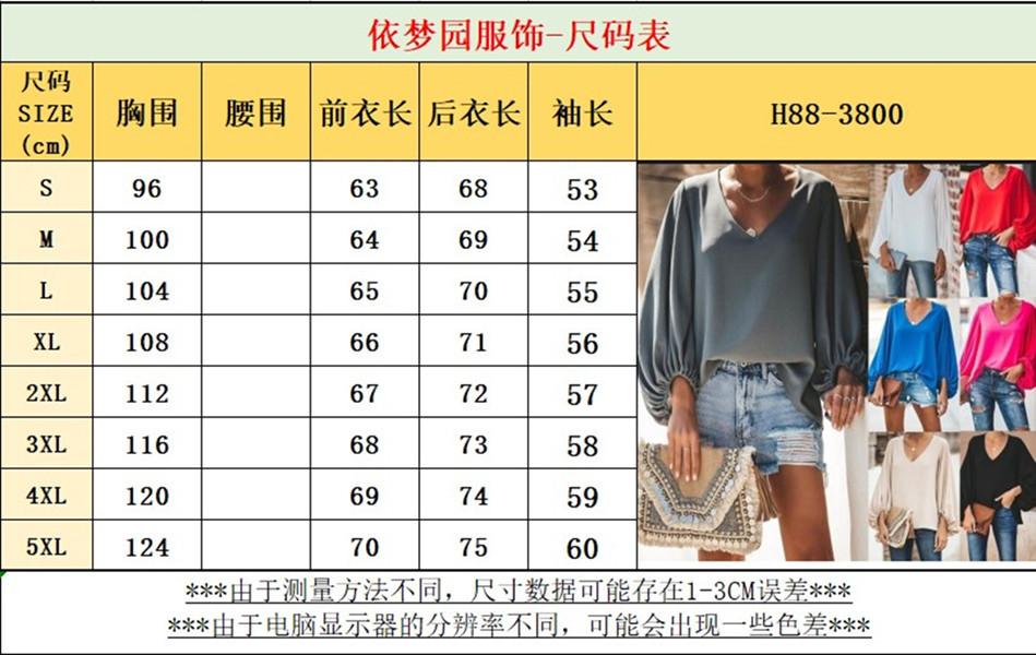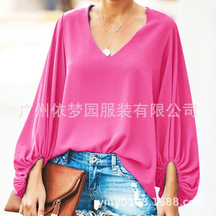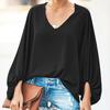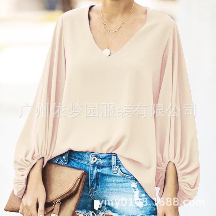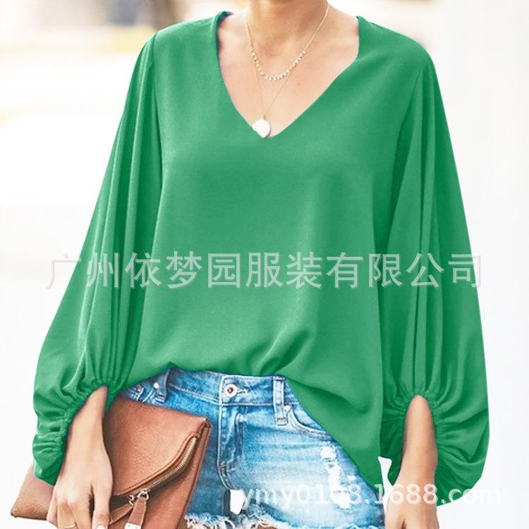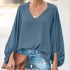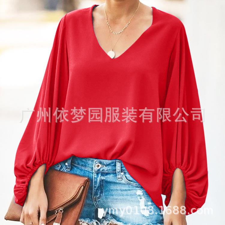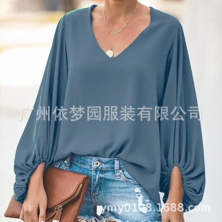 Ropa Europea y Americana Wish 2025 Verano Transfronteriza Nueva Camisa Cuello V Manga Linterna Suelta Manga Larga Talla Grande Top para Mujer