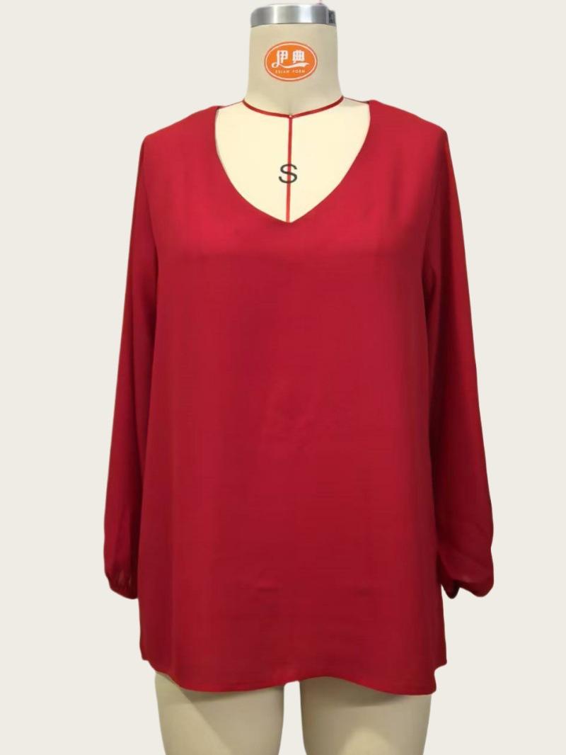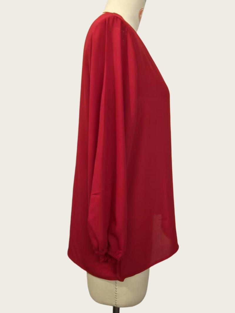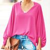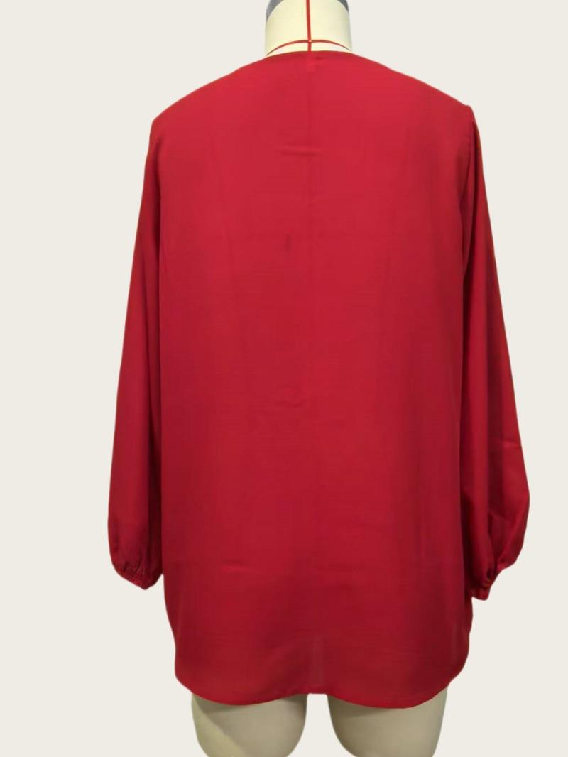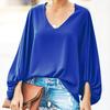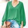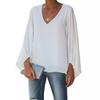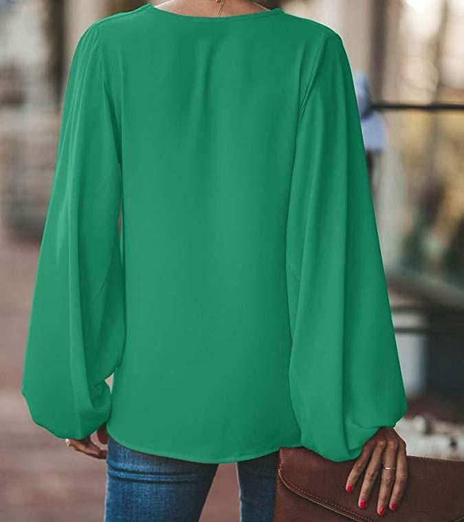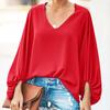 Ropa Europea y Americana Wish 2025 Verano Transfronteriza Nueva Camisa Cuello V Manga Linterna Suelta Manga Larga Talla Grande Top para Mujer