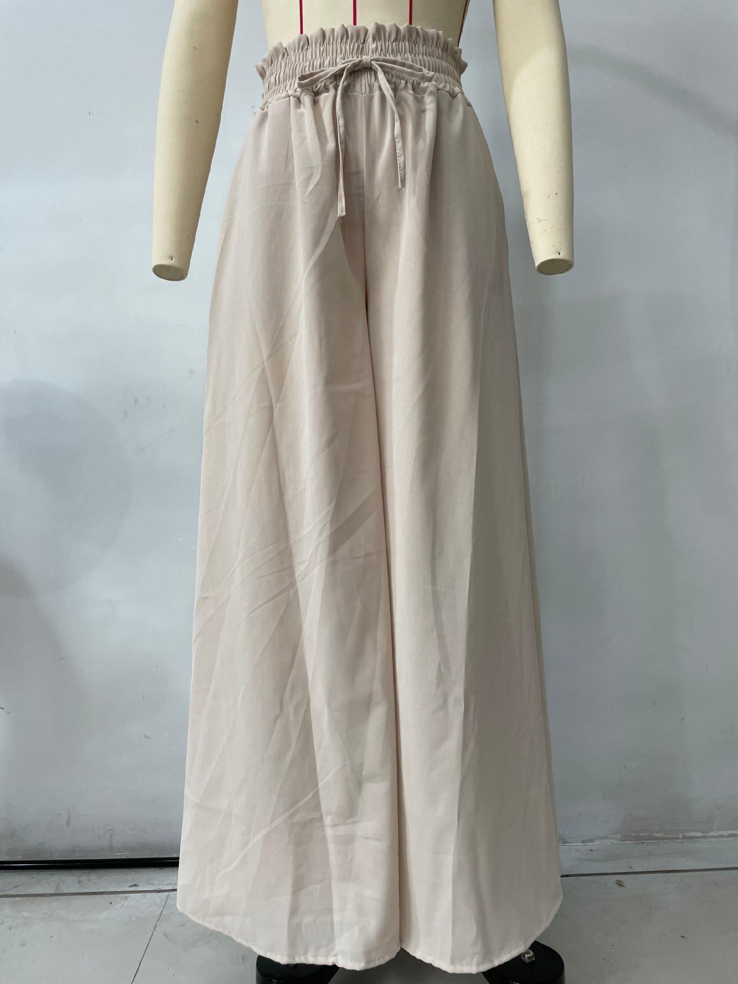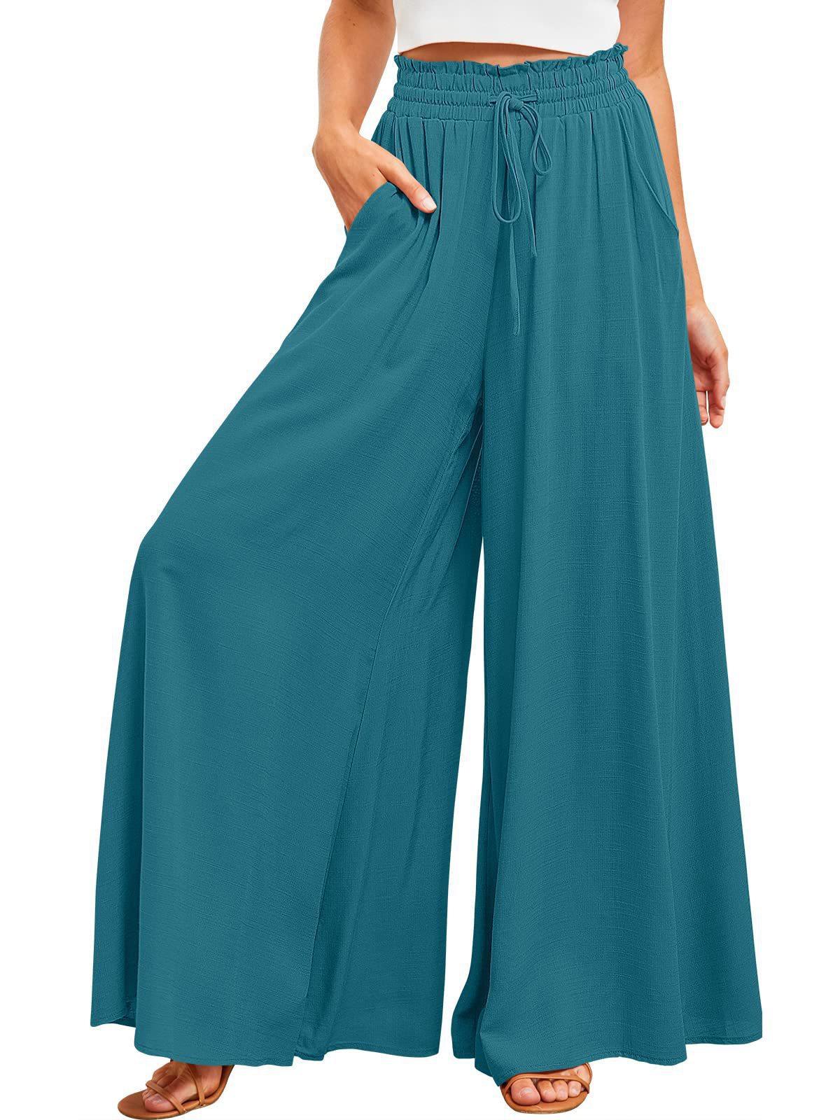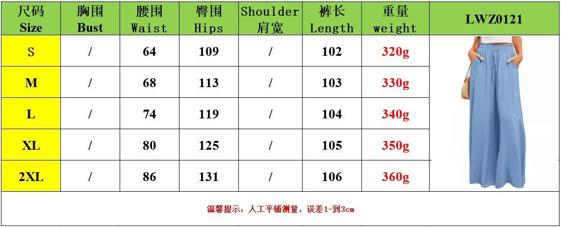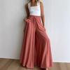 Pantalones casuales de pierna ancha y cintura alta con cinturón elástico de moda europea y americana para mujer de Amazon transfronterizos de verano de 2024