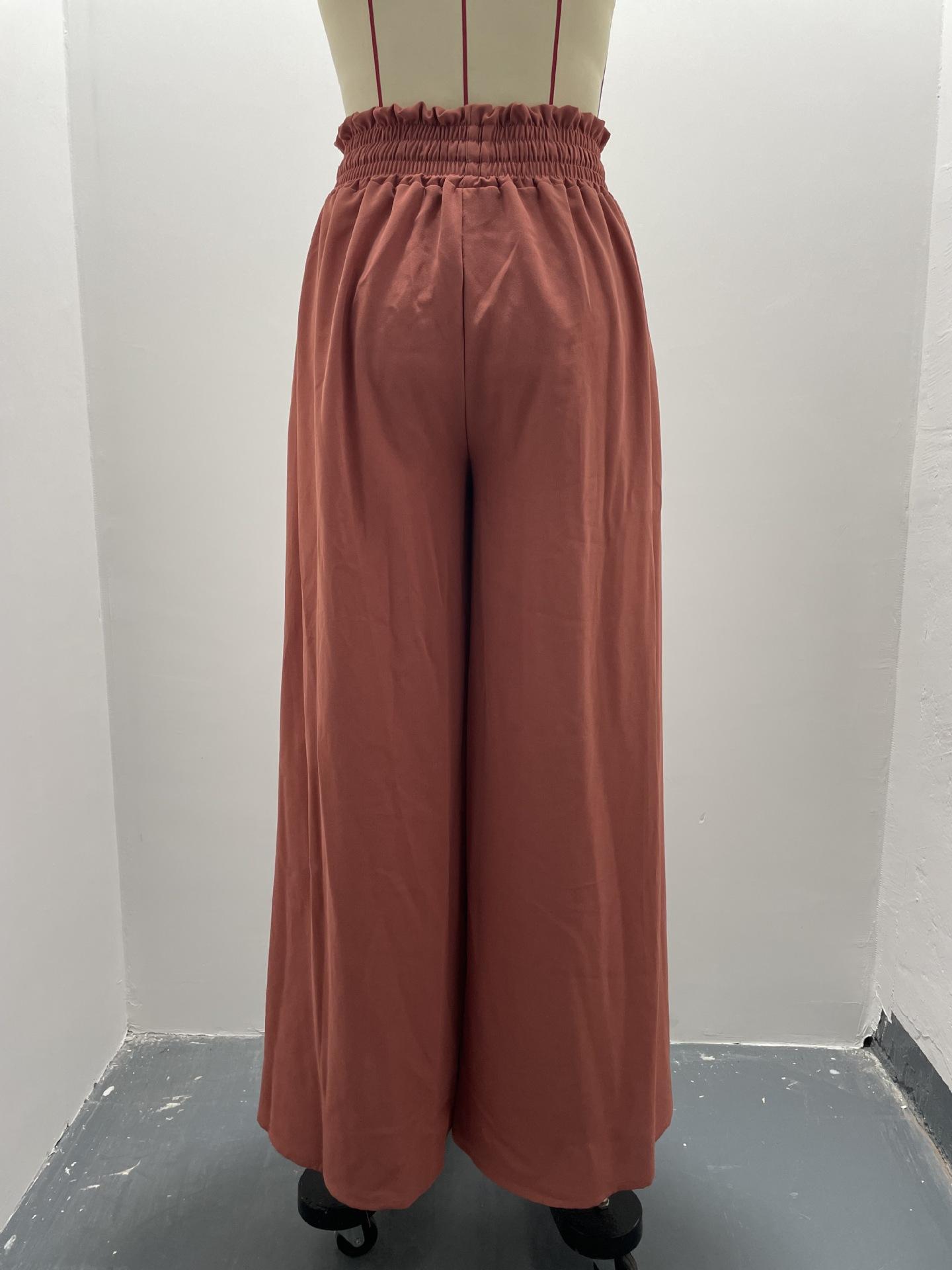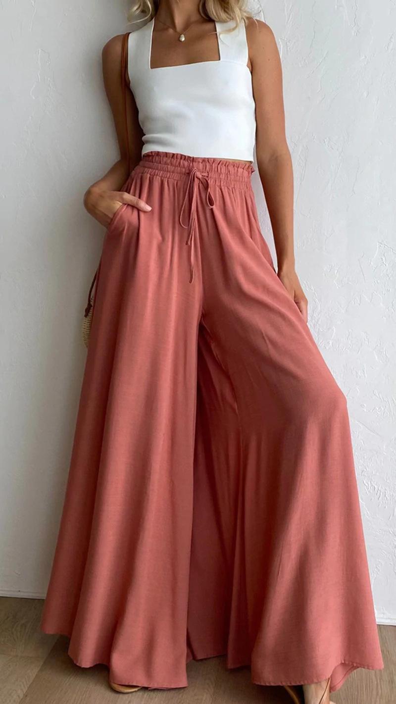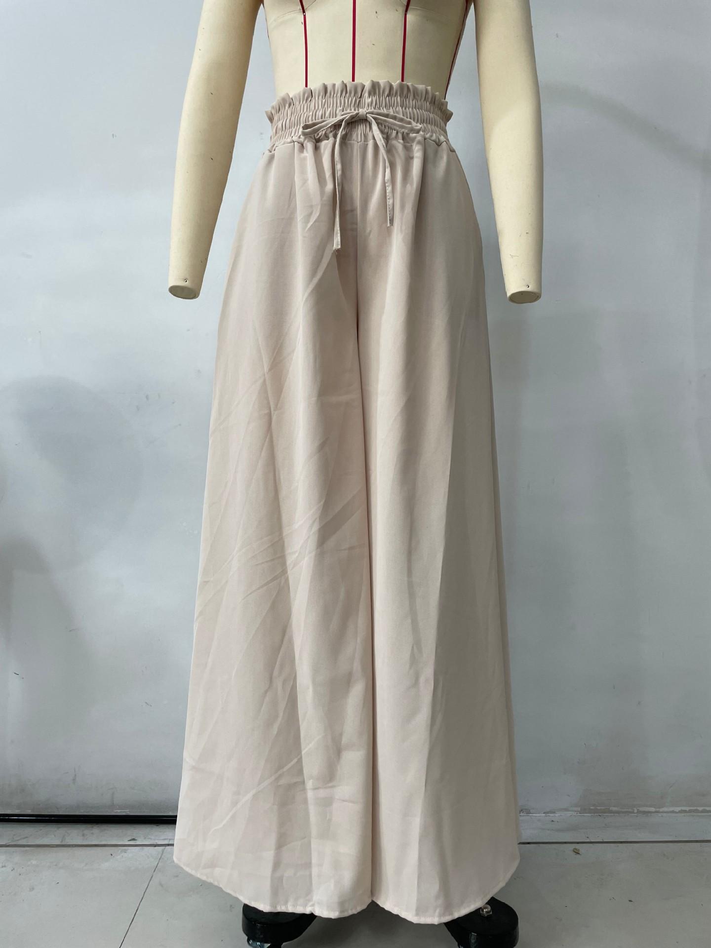 Pantalones casuales de pierna ancha y cintura alta con cinturón elástico de moda europea y americana para mujer de Amazon transfronterizos de verano de 2024