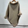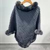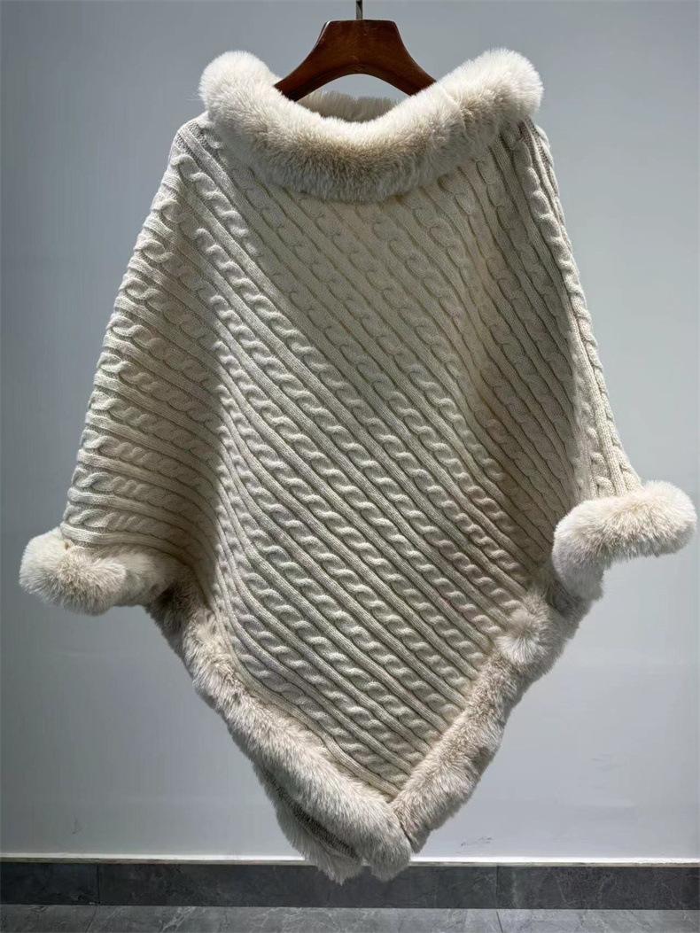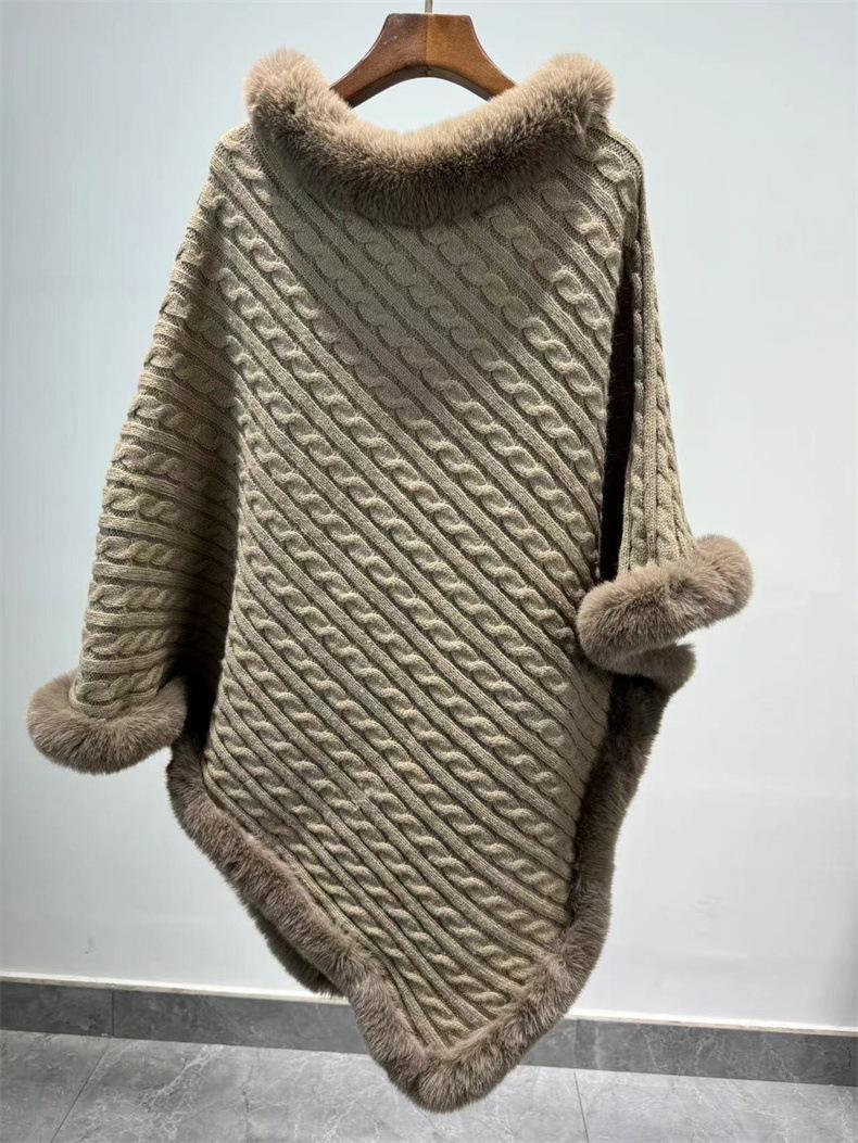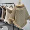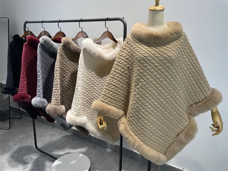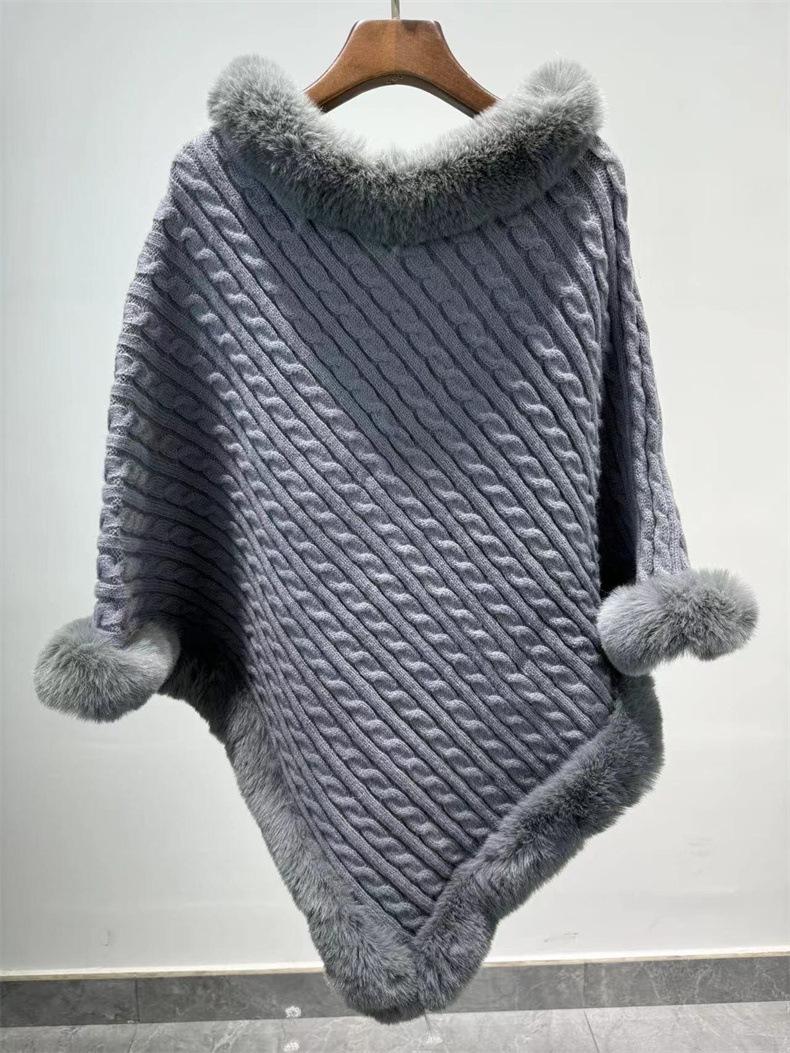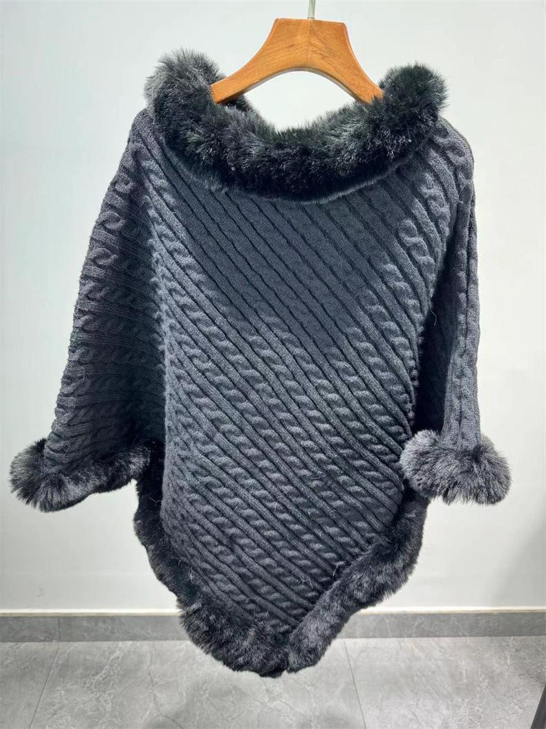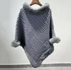 Capa de cuello de piel de conejo de imitación transfronteriza europea y americana, prenda exterior, jersey holgado, chal de manga murciélago de color puro a la moda