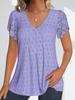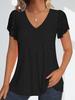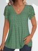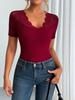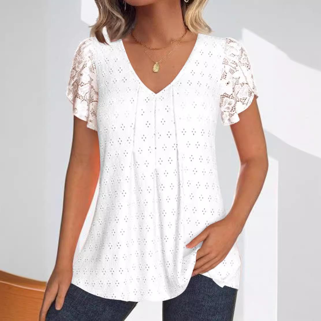 2024 Amazon Europa y Estados Unidos comercio exterior transfronterizo primavera y verano nueva chaqueta de camiseta casual de manga corta con cuello en V de color sólido con encaje para mujer