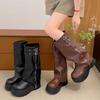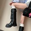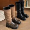Botas casuales de cuero japonesas y coreanas con plataforma, botas de plataforma, botas de cuña por encima de la rodilla, botas de nieve X208