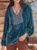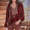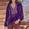 2021 Primavera Nuevo Wish Amazon Mujer Cuello en V Fruncido Estampado Manga Larga Talla Grande Camiseta Top