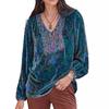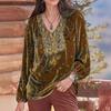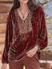 2021 Primavera Nuevo Wish Amazon Mujer Cuello en V Plisado Estampado Manga Larga Talla Grande Top