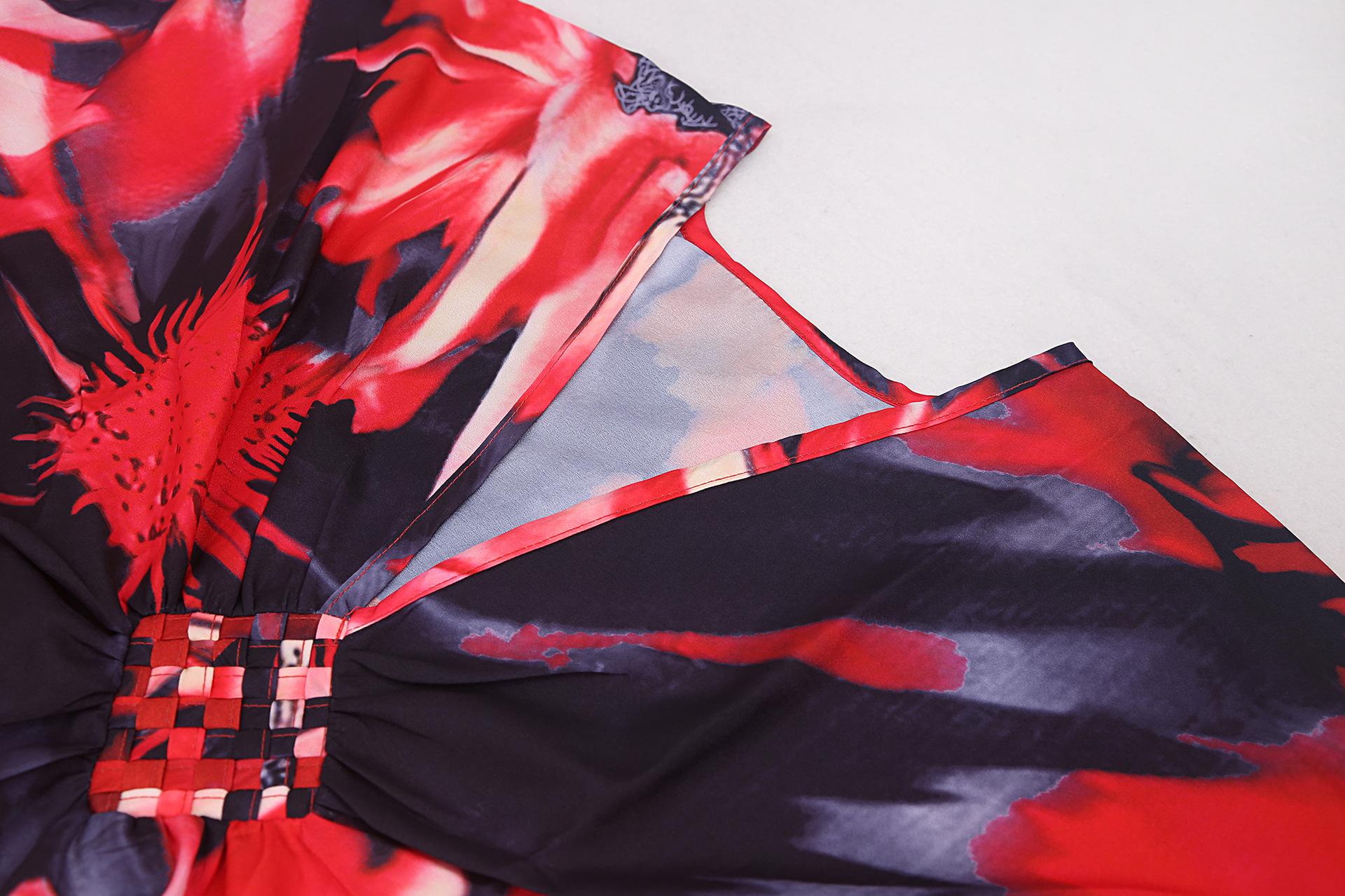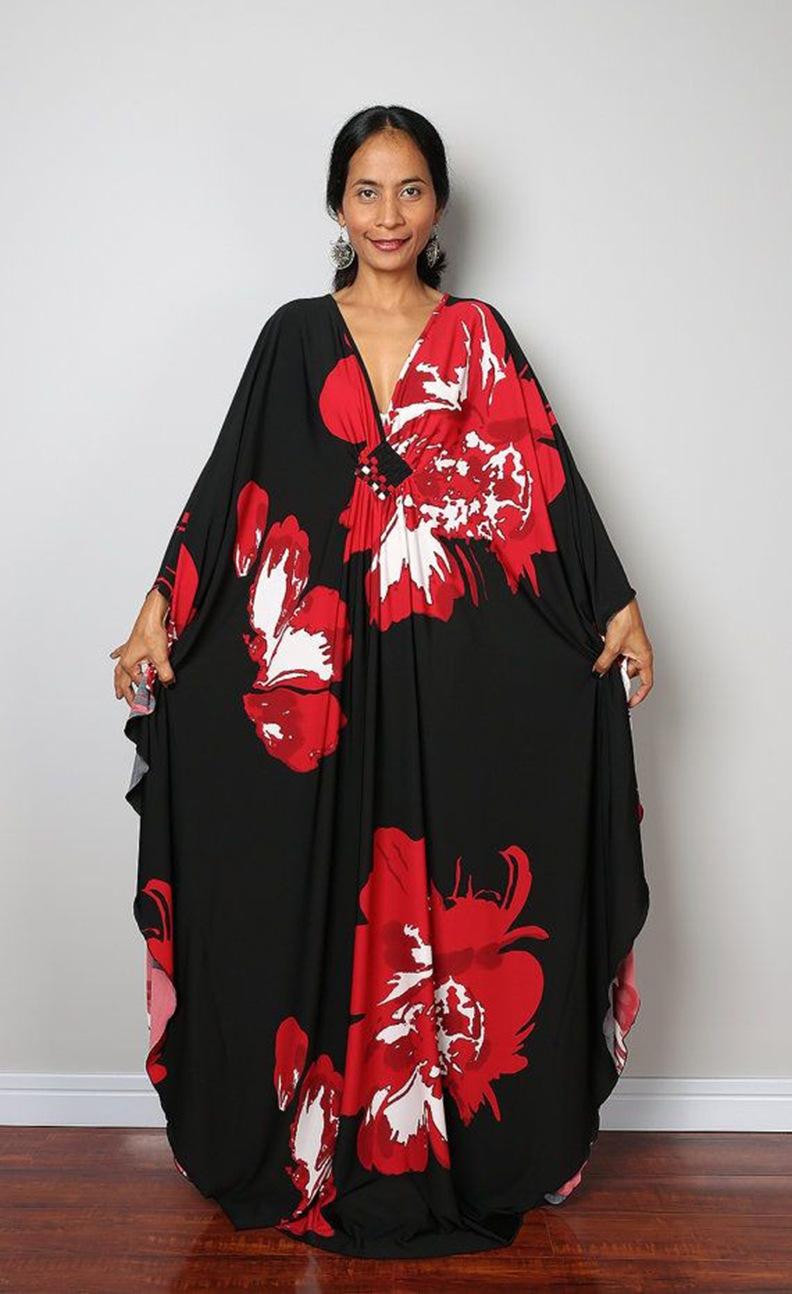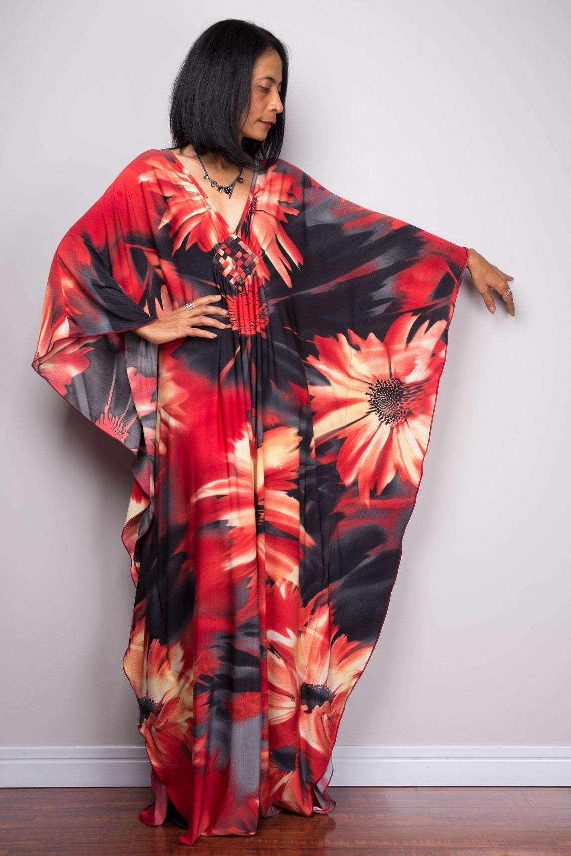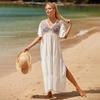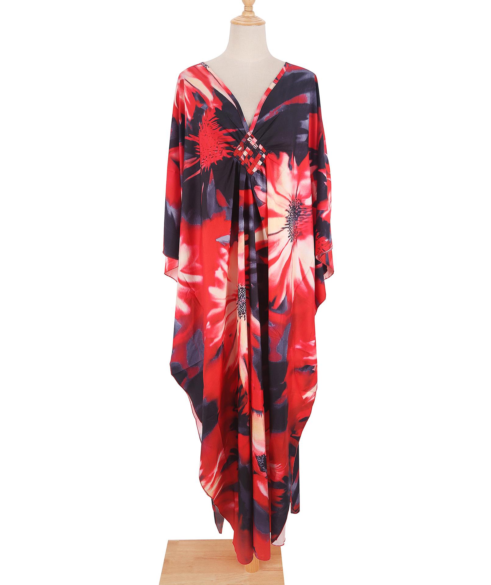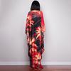Vestido largo de playa tejido a mano con flores negras y rojas, bata de protección solar, bikini, blusa, traje de baño para mujer