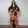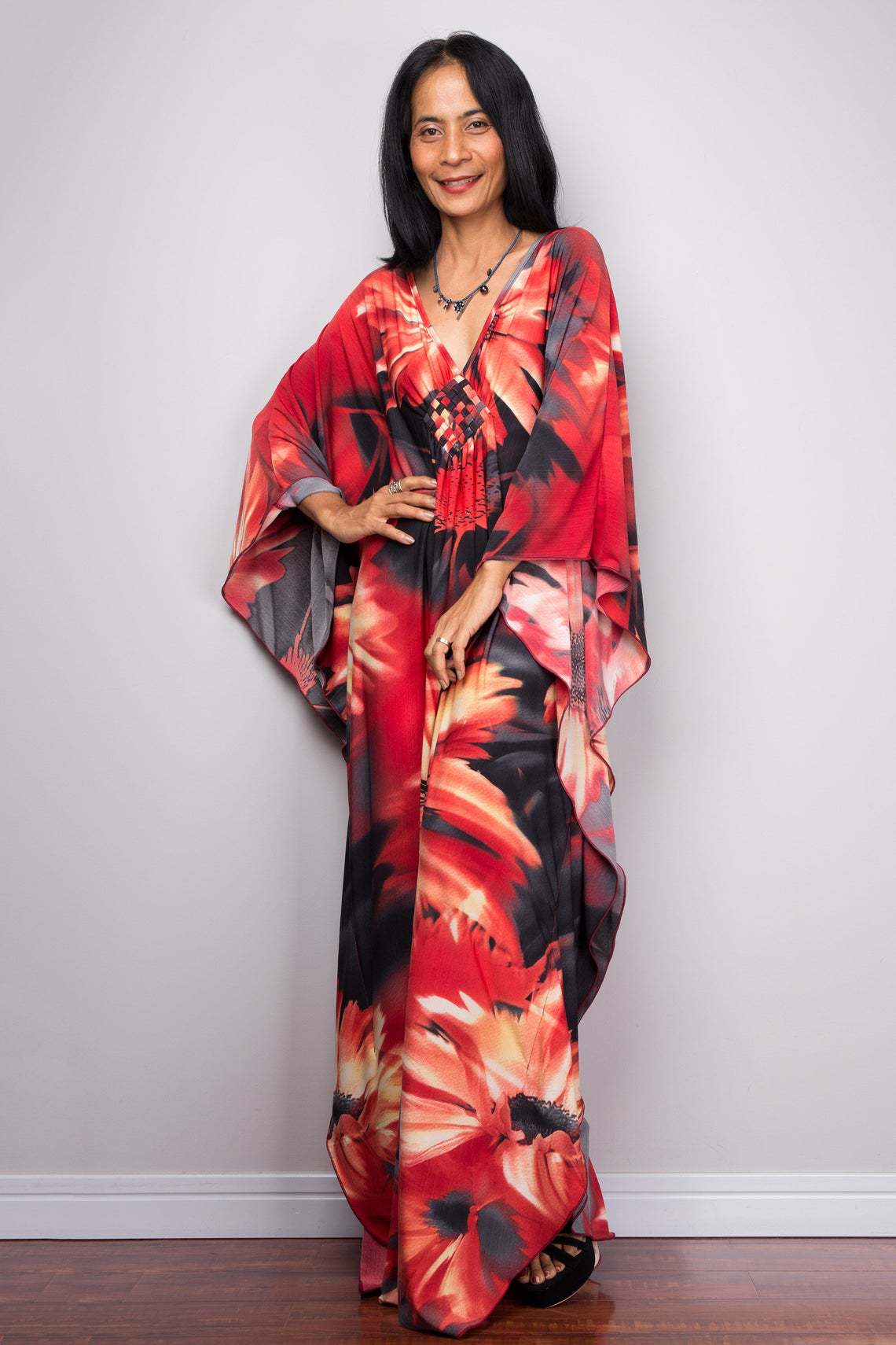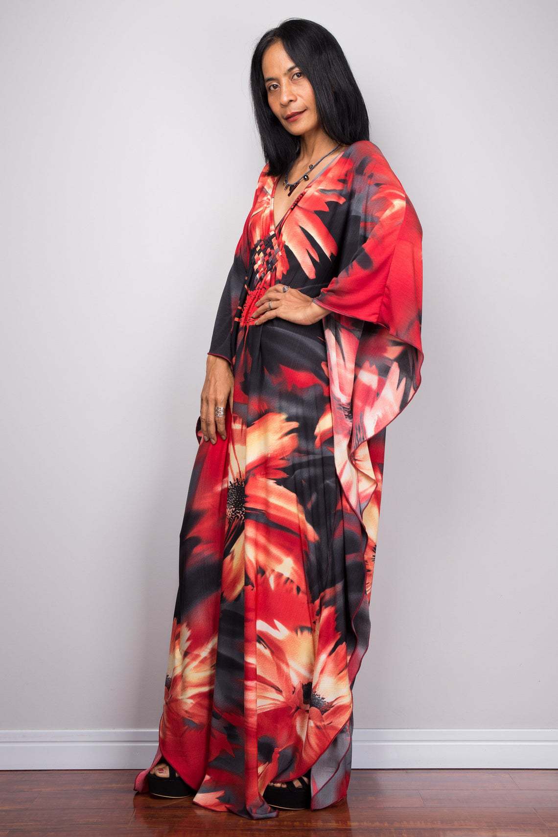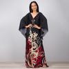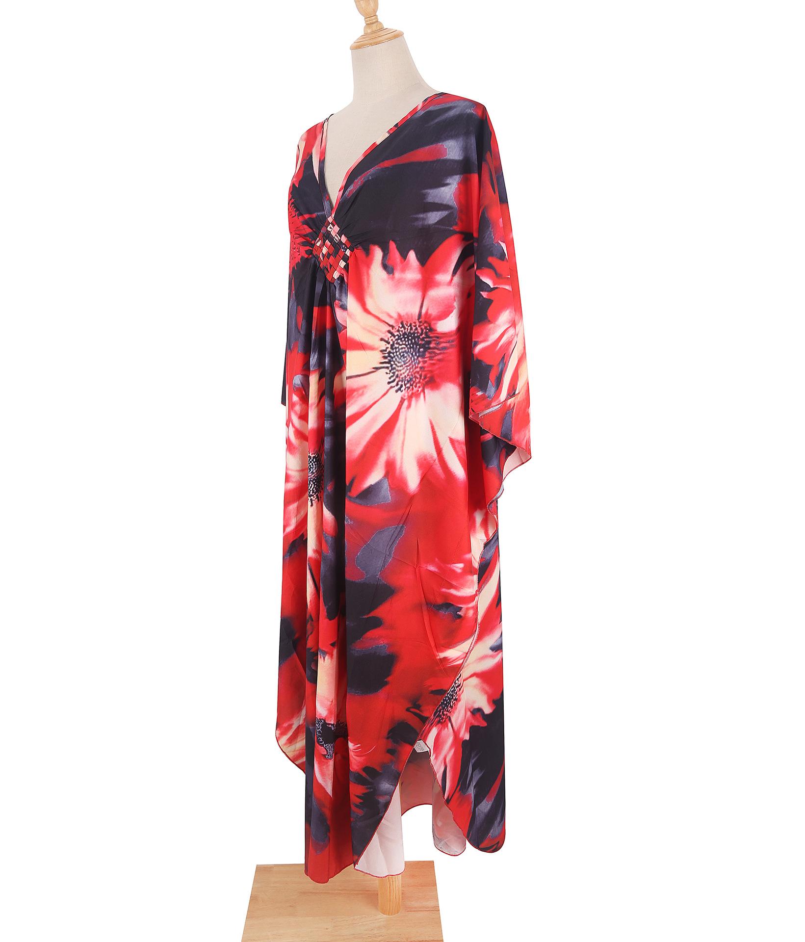 Vestido largo de playa tejido a mano con flores negras y rojas, bata de protección solar, bikini, blusa, traje de baño para mujer