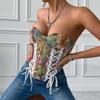 Chaleco de estilo europeo y americano 3129 con escote bajo, encaje, tirantes finos y espalda descubierta, estilo europeo y americano.