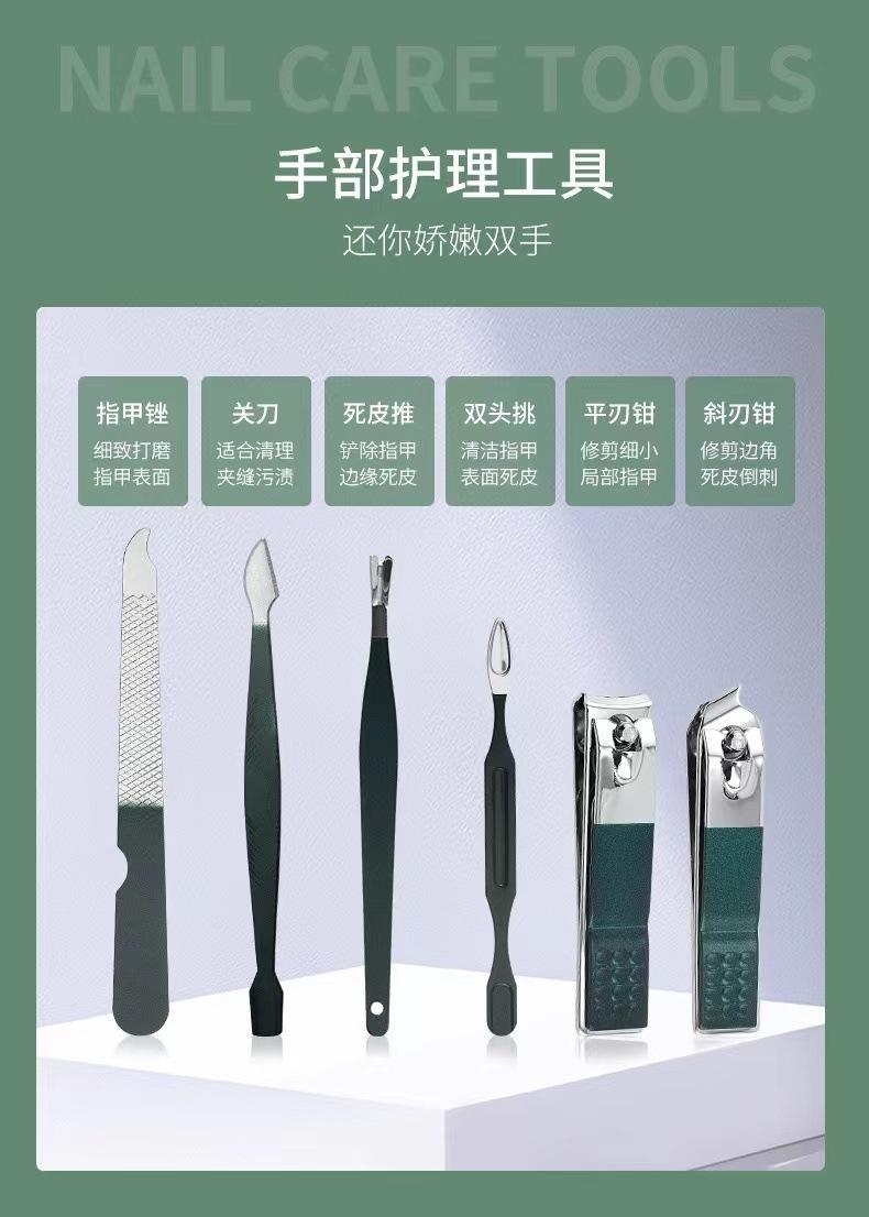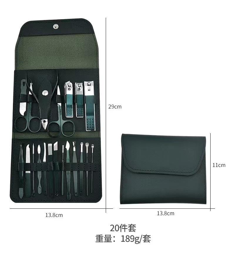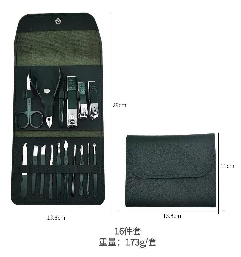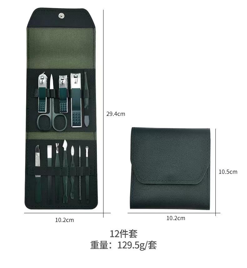 Juego de cortaúñas verde oscuro, herramienta de pedicura, cuchillo, traje, cortaúñas, juego completo de cortaúñas de alta calidad, traje con pala para orejas