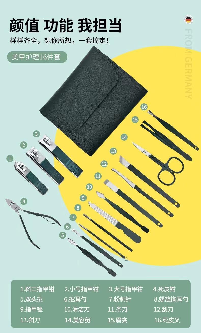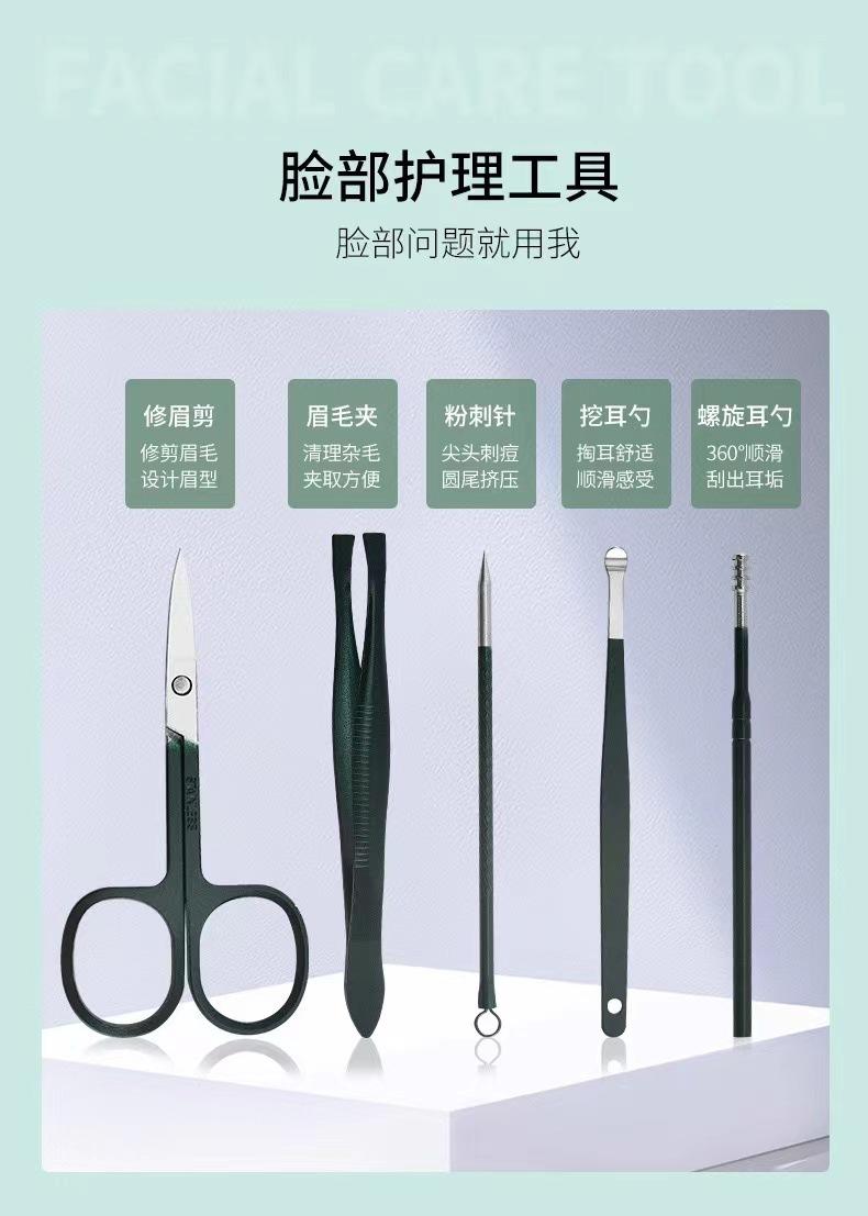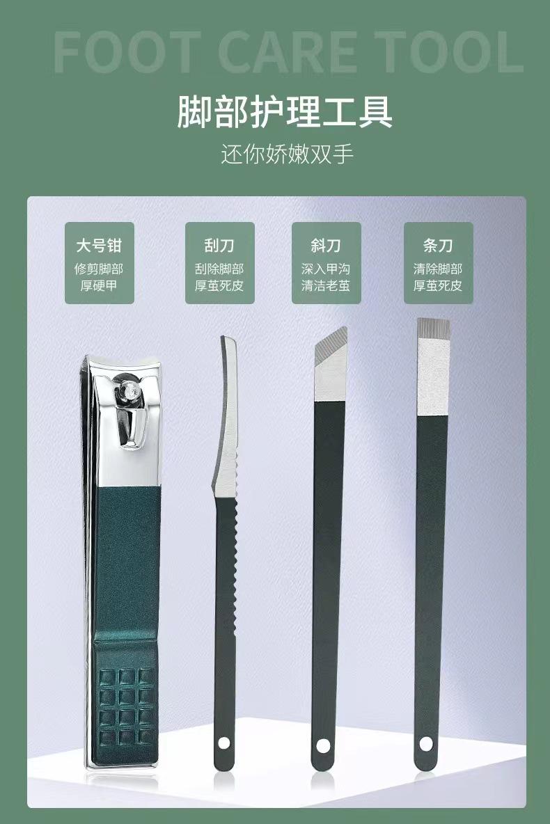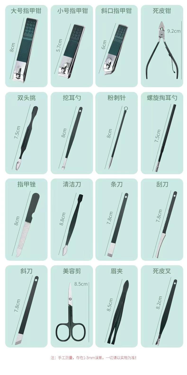 Juego de cortaúñas verde oscuro, herramienta de pedicura, cuchillo, traje, cortaúñas, juego completo de cortaúñas de alta calidad, traje con pala para orejas
