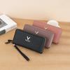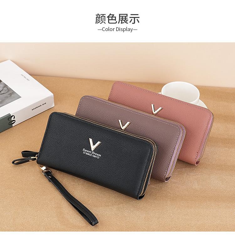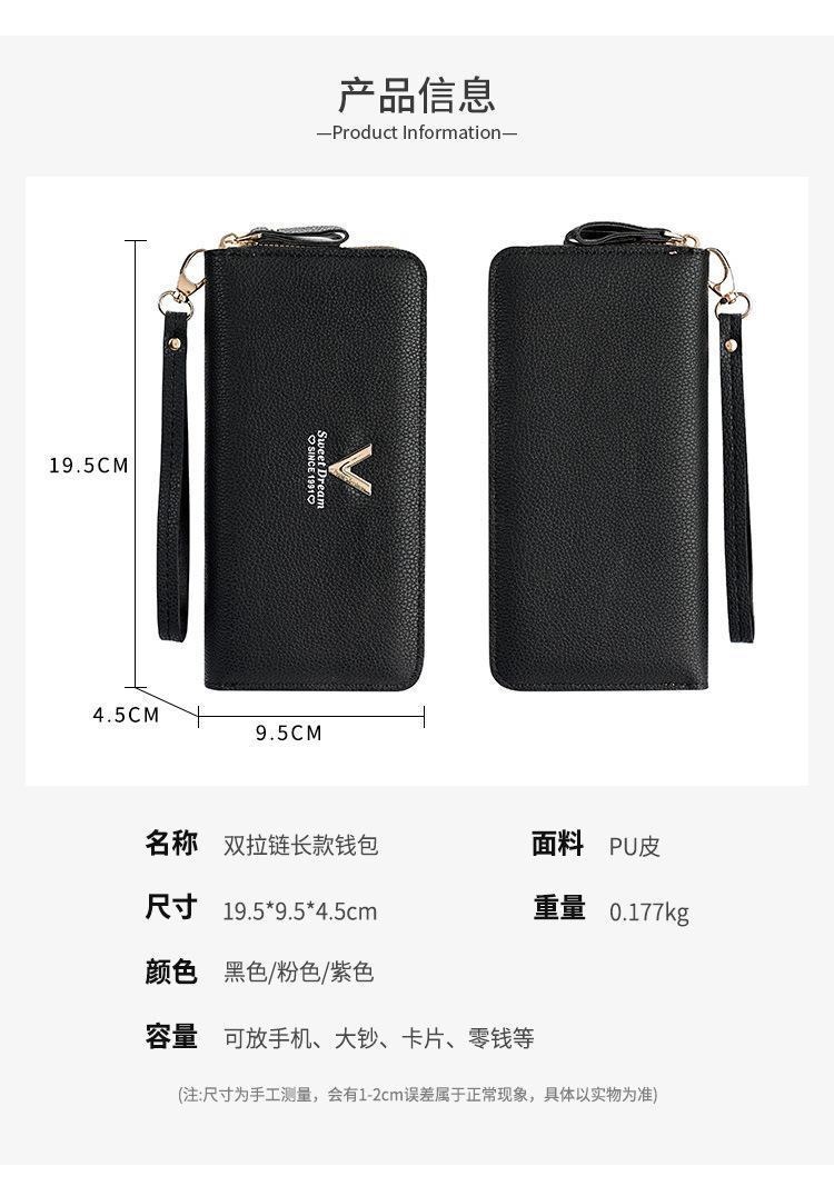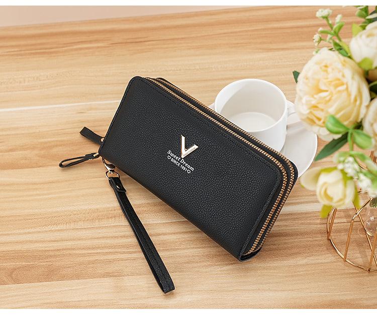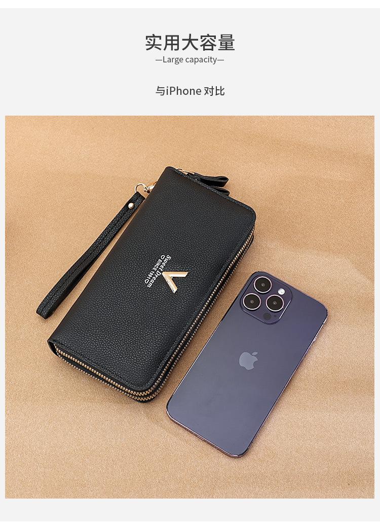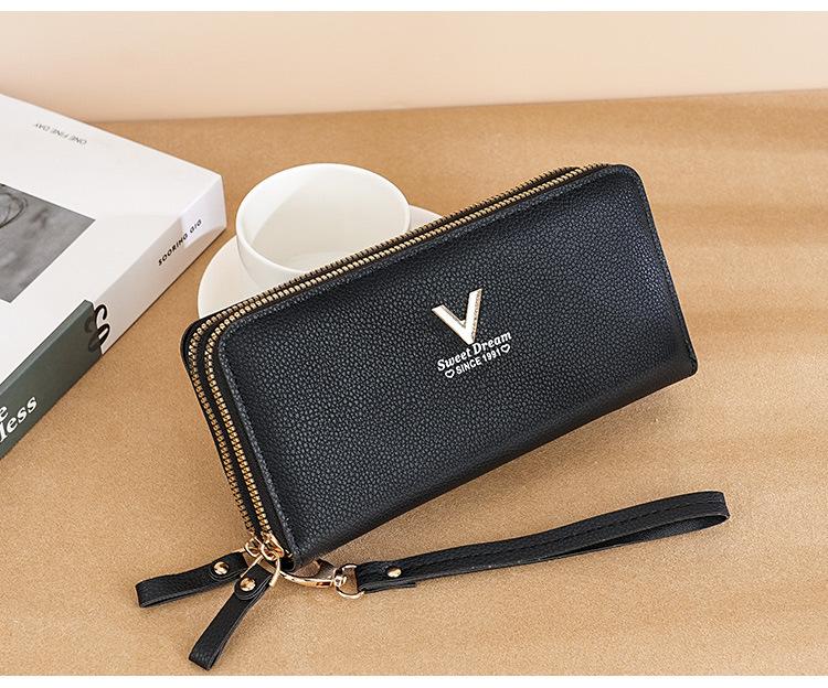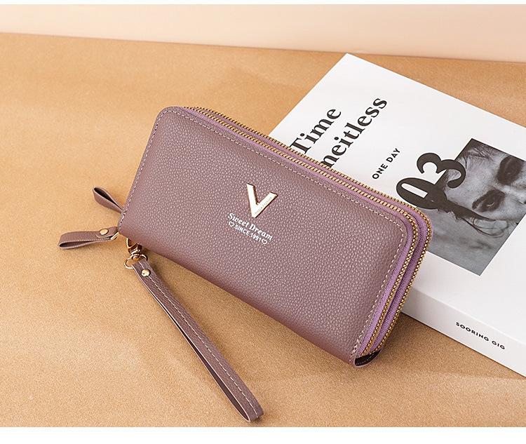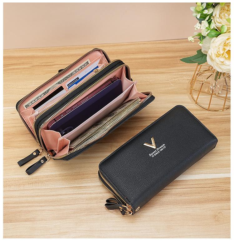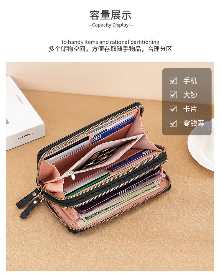 Nueva Cartera de Mujer Moda Cremallera Doble Capa Bolso Clutch Largo Patrón Lichi Bolsa para Teléfono Móvil Gruesa Multitarjeta Gran Capacidad