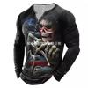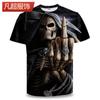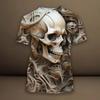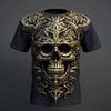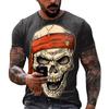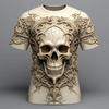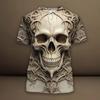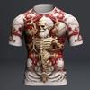 Camiseta para hombre con estampado de calavera, cuello redondo, impresión 3D, estilo urbano, manga corta, estilo retro informal