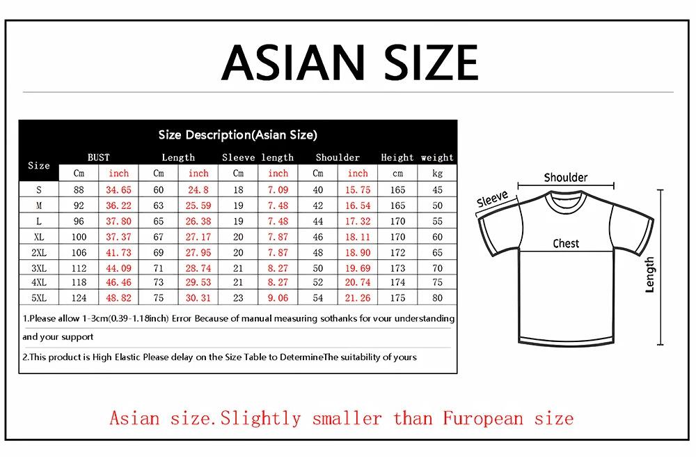 S, M, L, XL, 2XL, 3XL, 4XL, 5XL