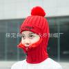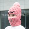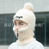 Gorro de otoño e invierno para mujer, estilo coreano, con protección para el cuello, integrado, para ciclismo, resistente al viento, cálido, de punto, de lana gruesa con forro polar.