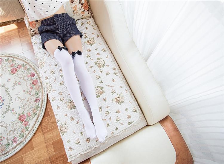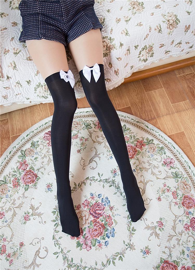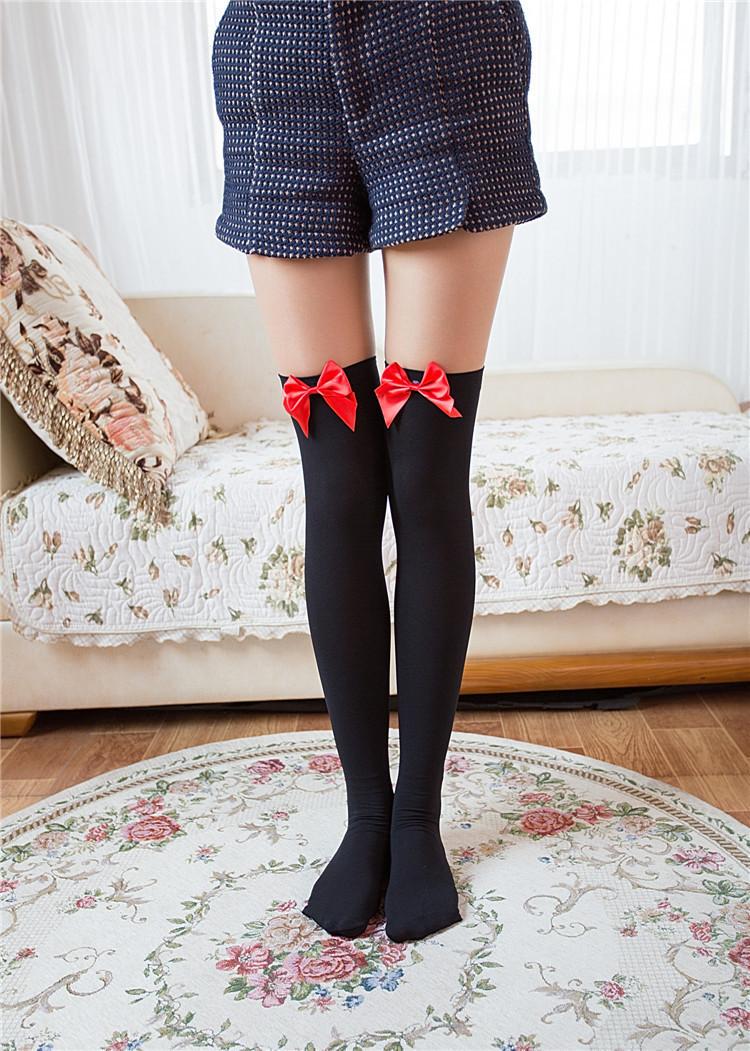 Medias de Terciopelo Lazo Tentación Medias Sexy para Mujer Estilo Japonés Calcetines Lindos por Encima de la Rodilla Lolita