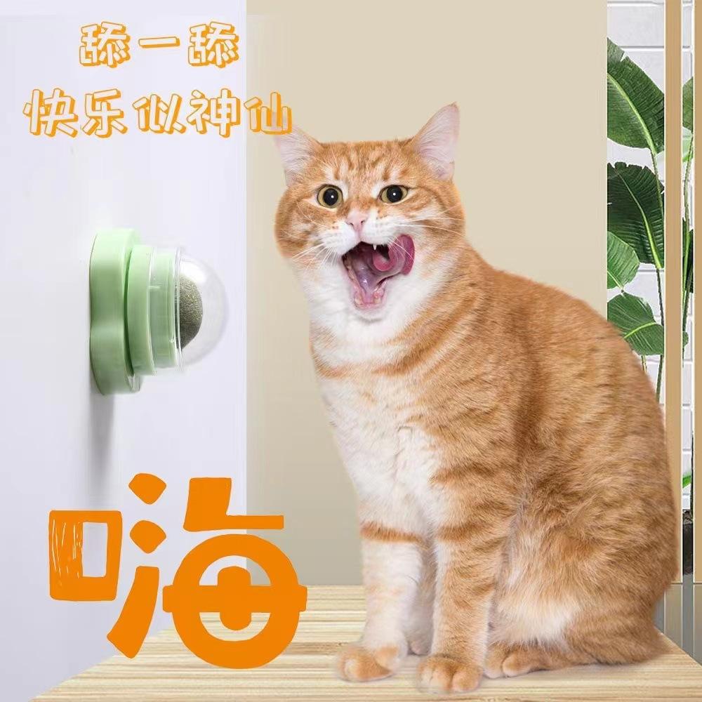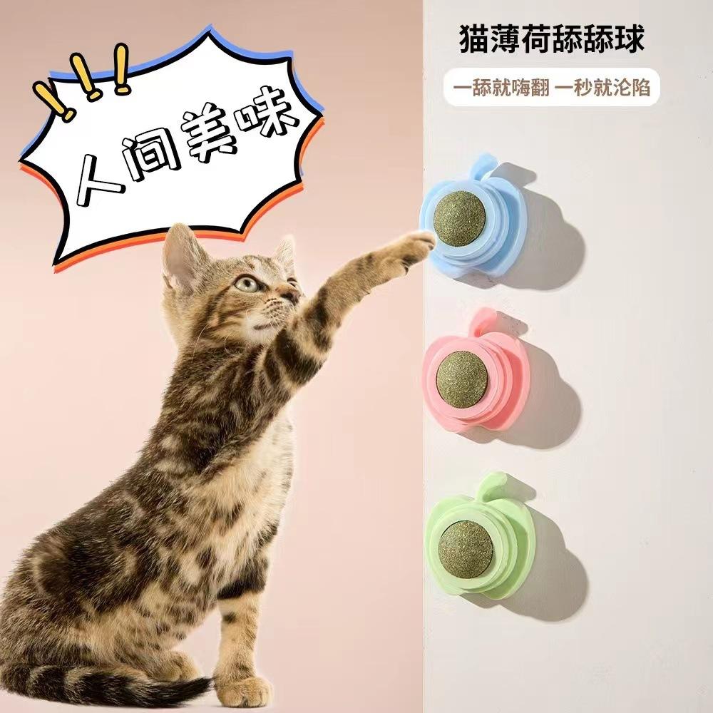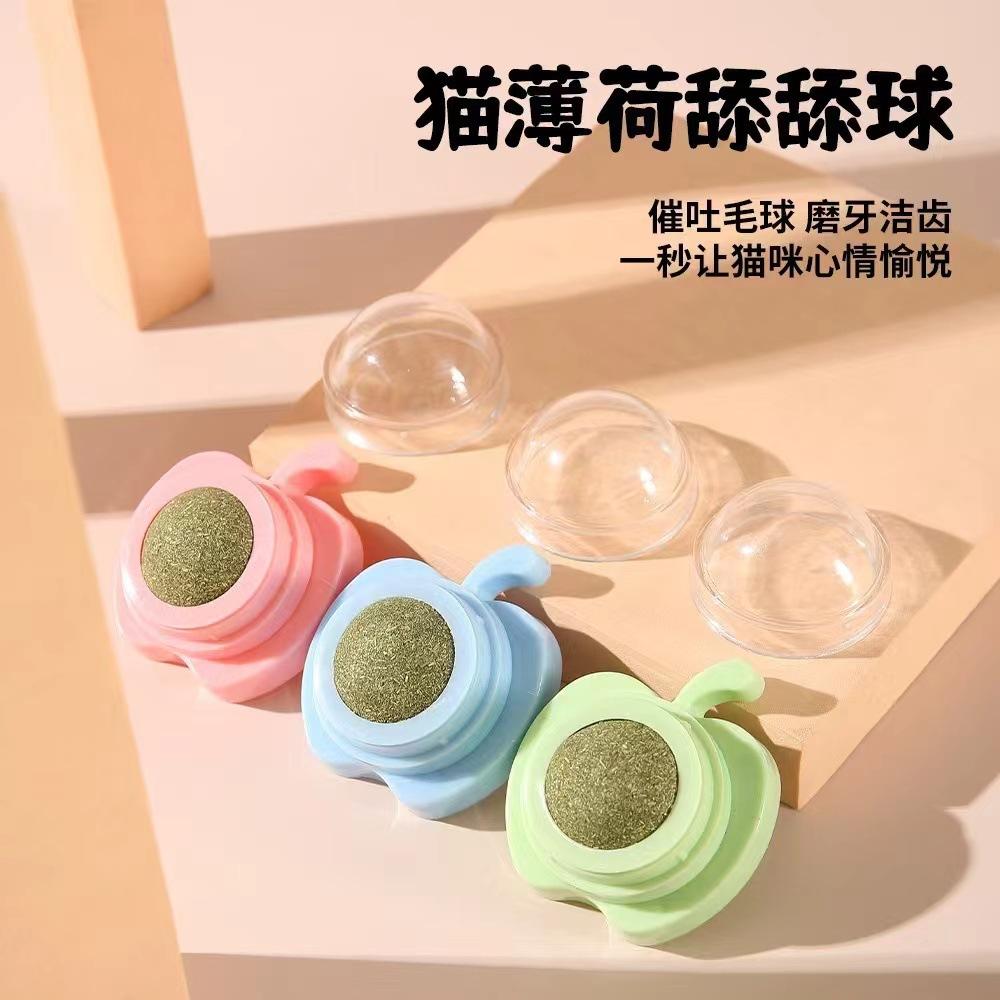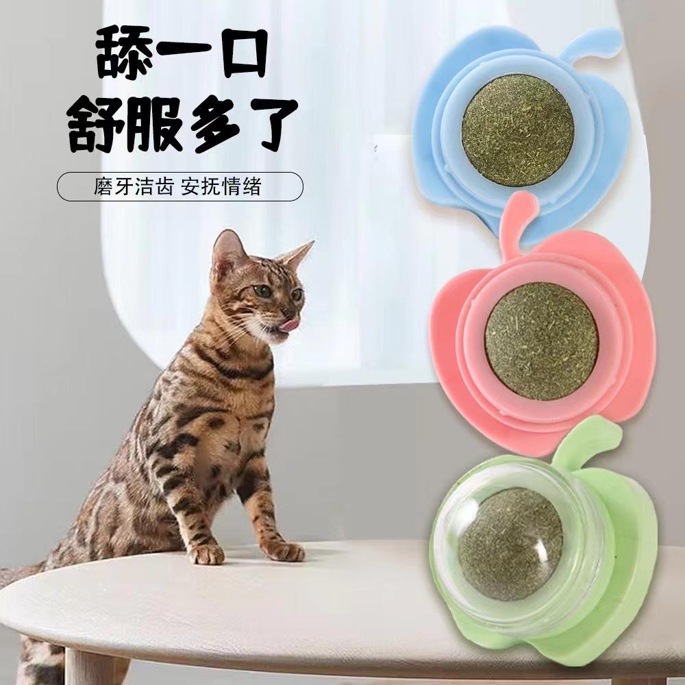 Juguete para gatos feliz con menta gatera, manzana, lamer, molares, divertido artefacto para gatos, adhesivo de pared, bola giratoria Polygonum Kappa