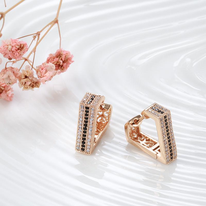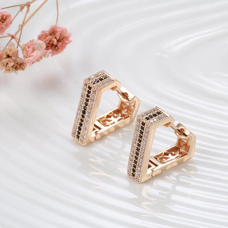 | |  | | | | Pendientes de circonita con temperamento europeo y americano para mujer, pendientes geométricos de circonita de oro rosa 585, suministro al por mayor de joyería de comercio electrónico transfronterizo | | | | | |