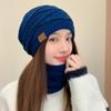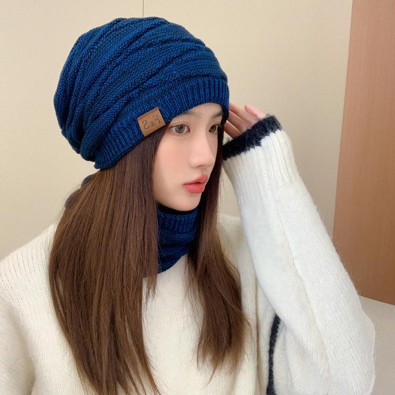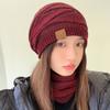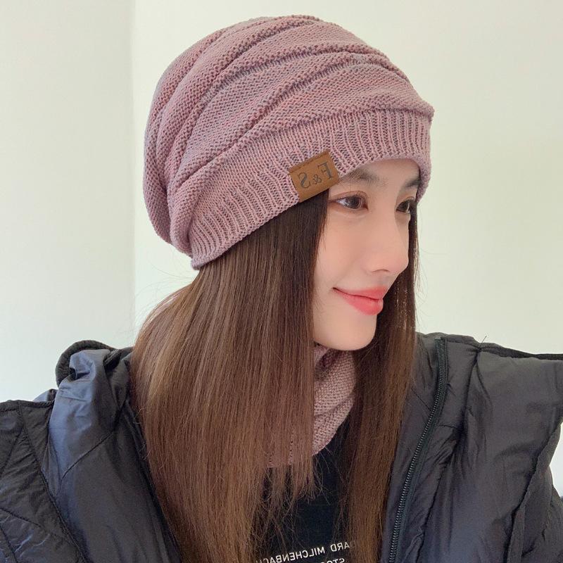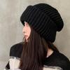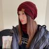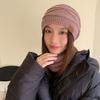 Gorro de lana de punto para otoño e invierno, gorro de confinamiento con orejeras cálidas a la moda, gorro de pelo, gorro de punto de cabeza grande para mujer a la moda