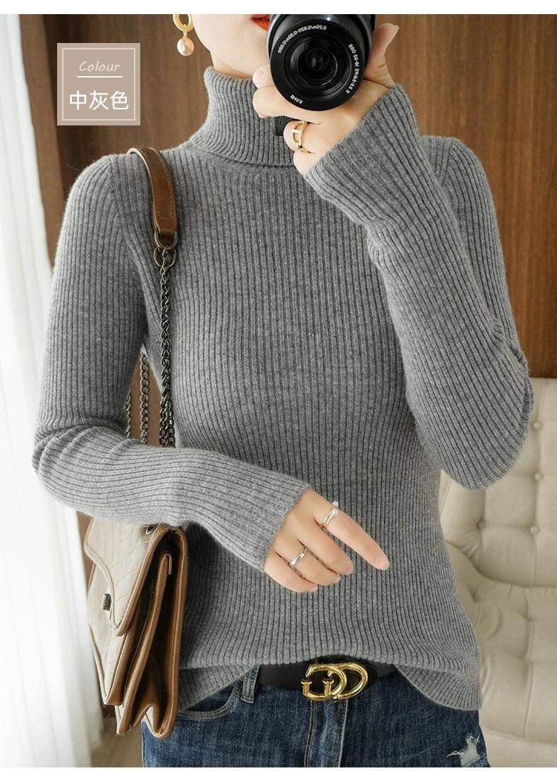 Nuevo Otoño e Invierno para Mujer Ajustado de Manga Larga Tejido Espesado Camiseta Básica con Abrigo Fabricante Venta al por Mayor