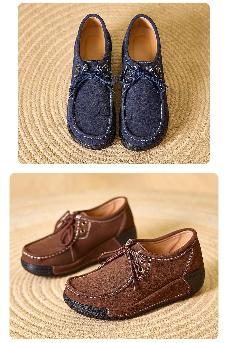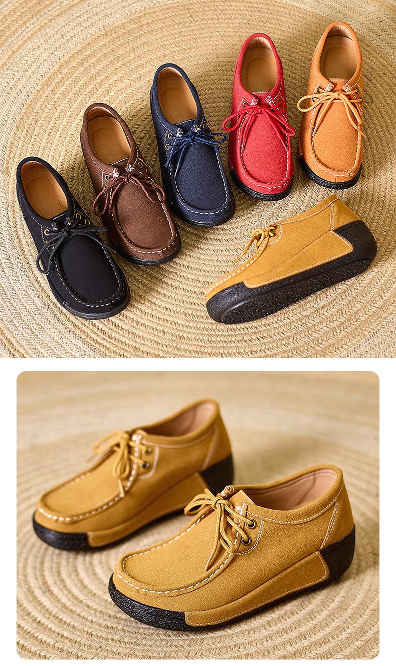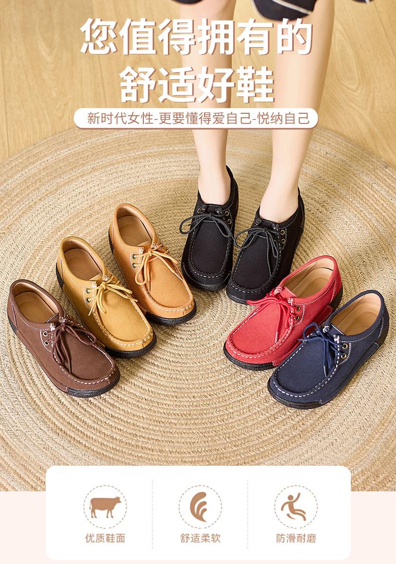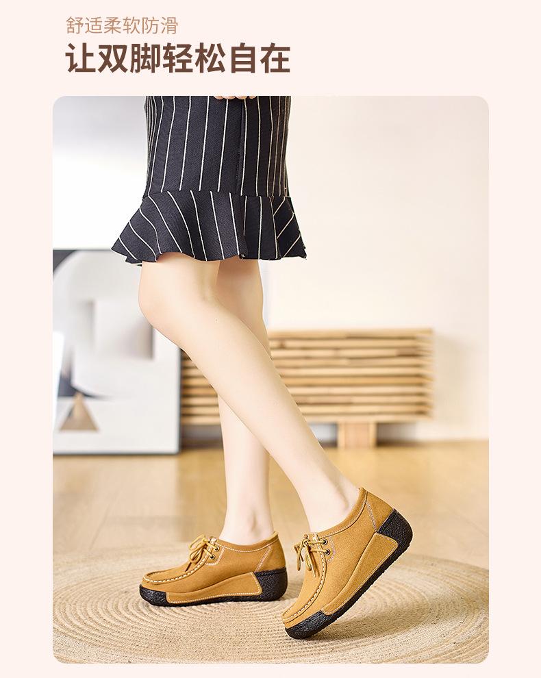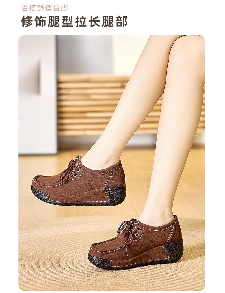 Zapatos de mamá de cuero genuino Primavera y Otoño nuevos zapatos de plataforma antideslizantes para mujer superficie de cuero zapatos de suela curva zapatos de plataforma para mujer mocasines casuales