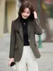 Chaqueta de traje pequeña marrón para mujer, primavera y otoño, nueva, estilo coreano, estilo británico, informal, elegante, top de traje.