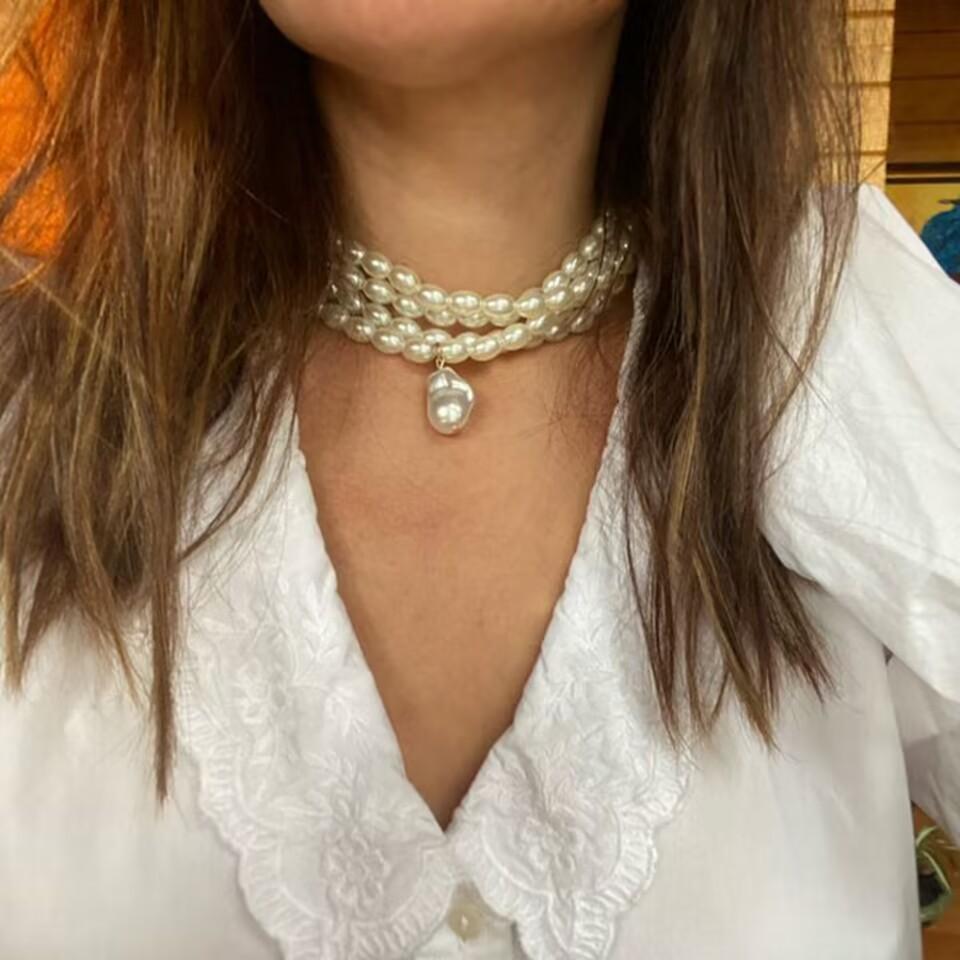 Joyería transfronteriza europea y americana collar multicapa de perlas de imitación para mujer retro de alta gama cadena para clavícula fabricante en stock venta al por mayor