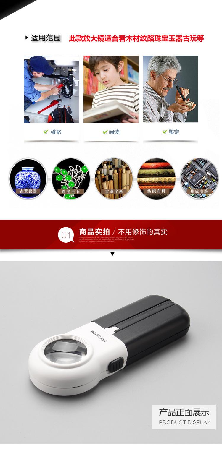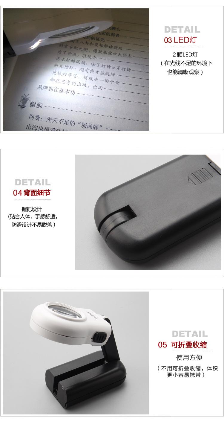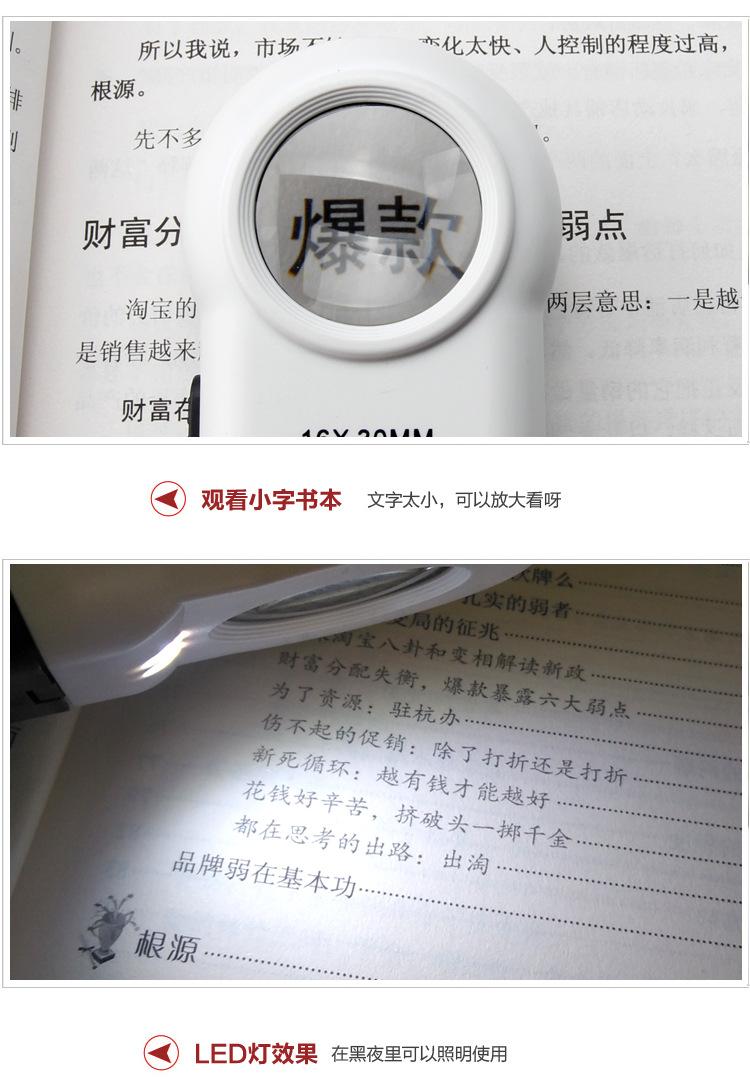 Lupa de lectura plegable multifuncional de pie con luz LED de 20 aumentos, directa de fábrica