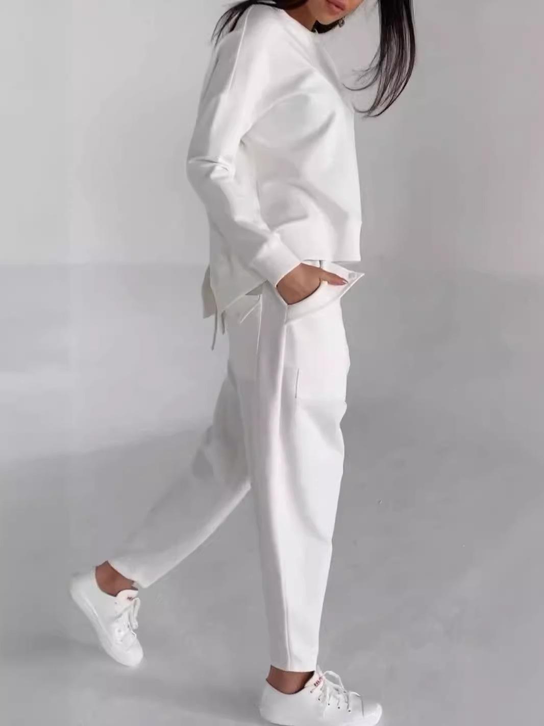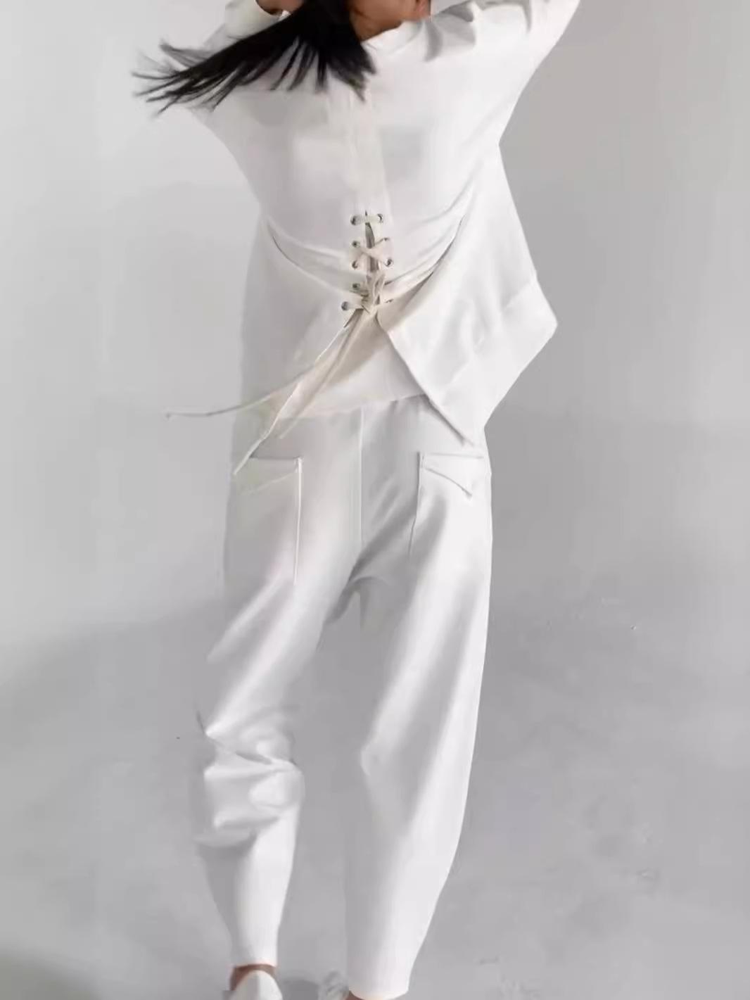 Traje de pantalón informal deportivo de color sólido con tendencia multibolsillo con cordones y comercio exterior europeo y americano de otoño de 2024
