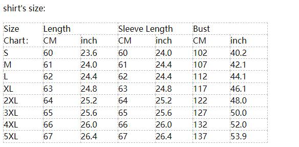 S, M, L, XL, 2XL, 3XL, 4XL, 5XL