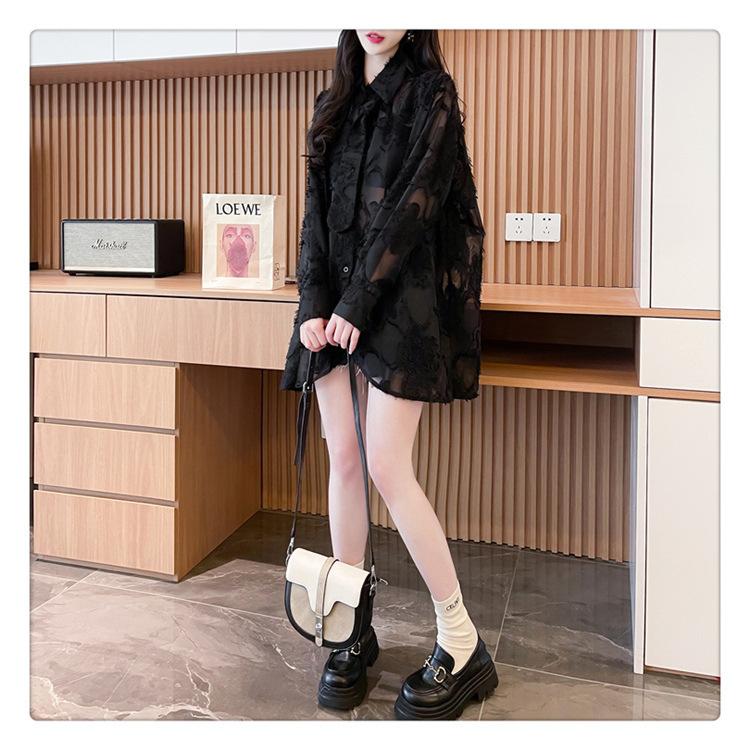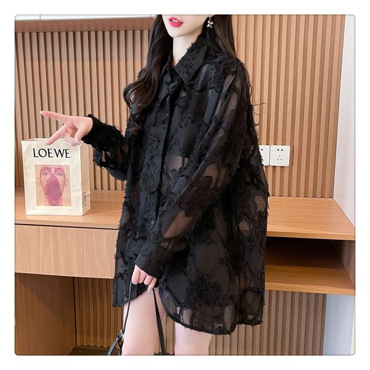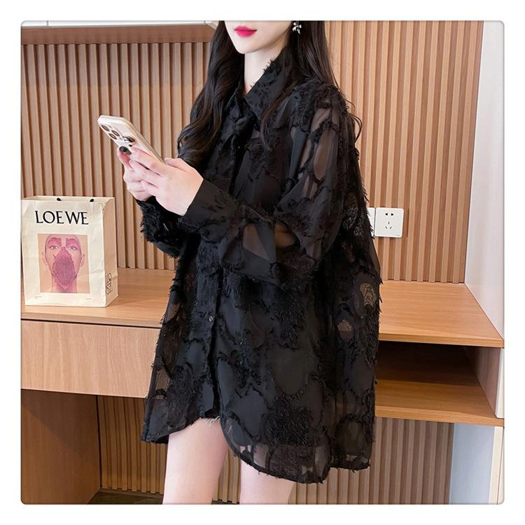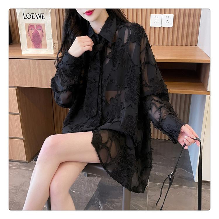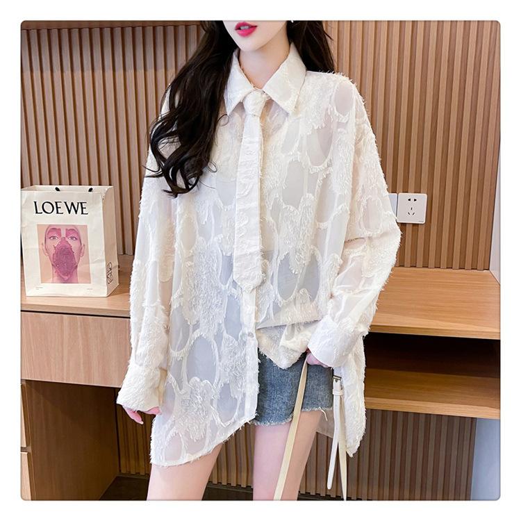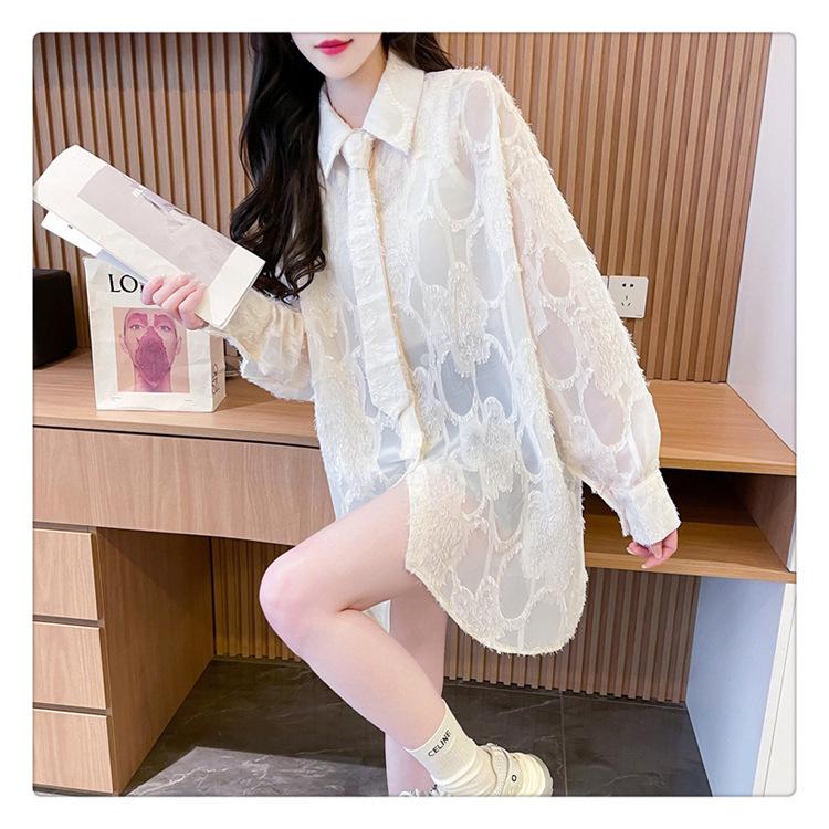 Camisa de Diseño Holgado y Delgado de Primavera y Verano 2024 para Mujer, Manga Larga, Diseño Sensorial, Estilo Lazy, Estilo Coreano, Ropa Protectora del Sol, Cárdigan de Moda