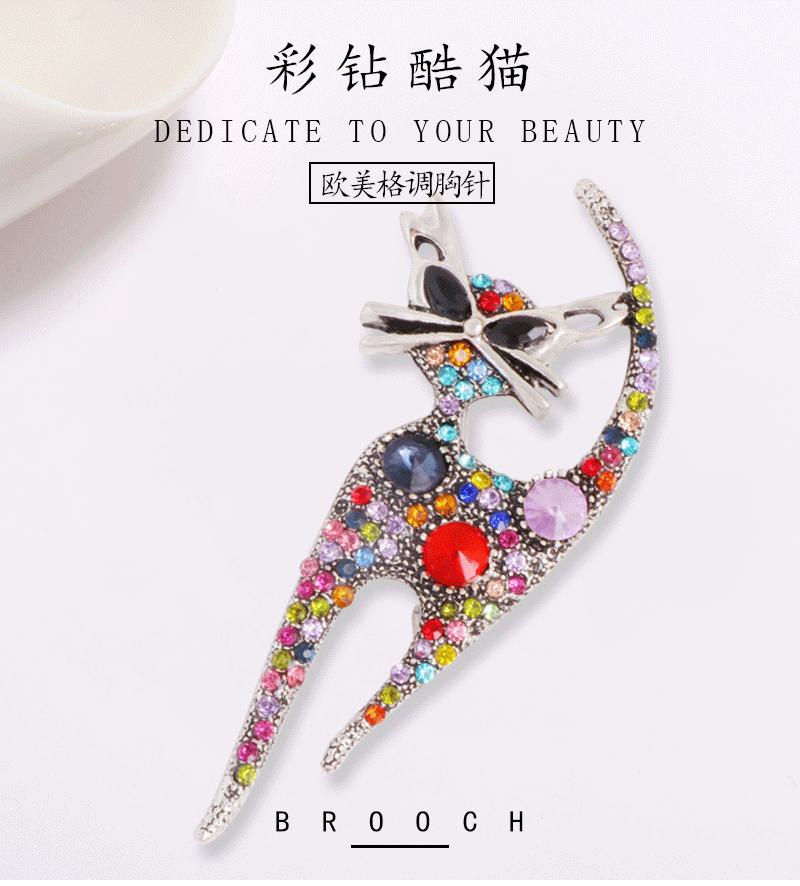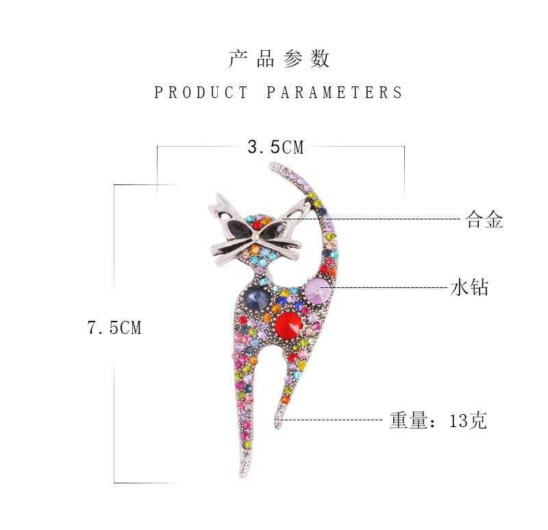 Broche de gato con forma de gatito, estilo retro, con ramilletes de estilo europeo y americano, exquisito broche de diamante para collar, entrega de una sola pieza