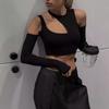 Ropa de mujer europea y americana 2023, nueva camiseta de manga larga ajustada con cuello en V y corte bajo para invierno para mujer