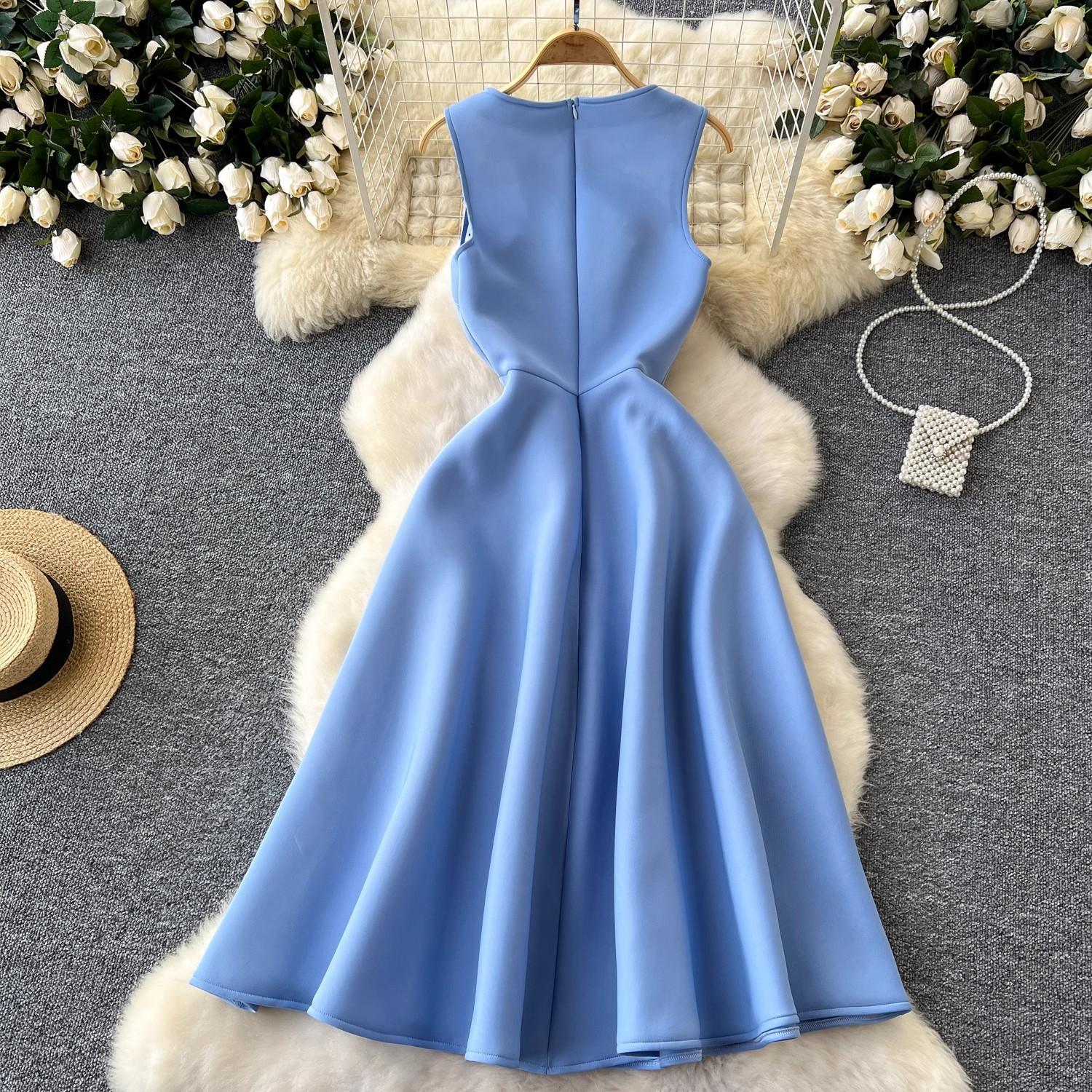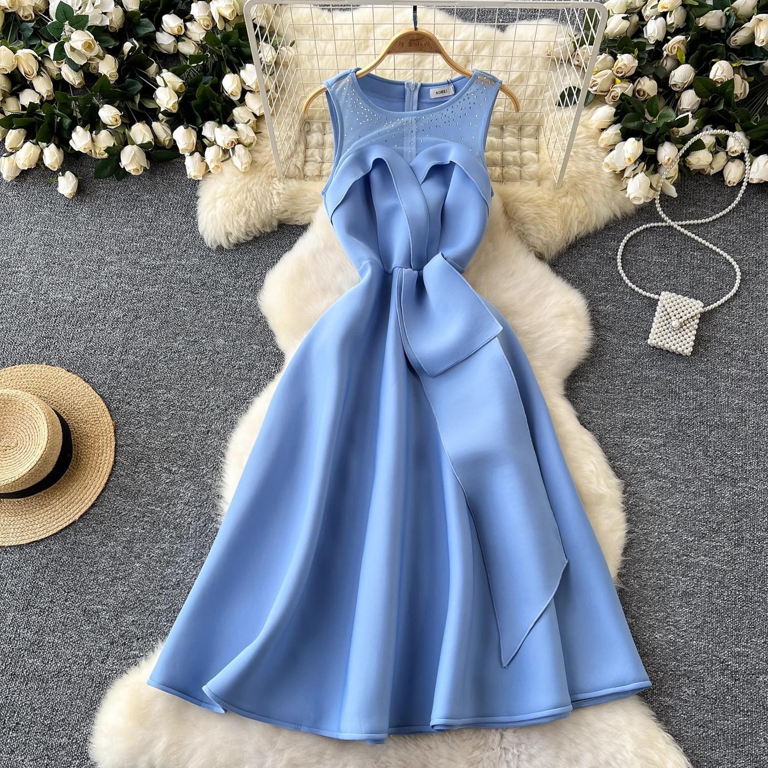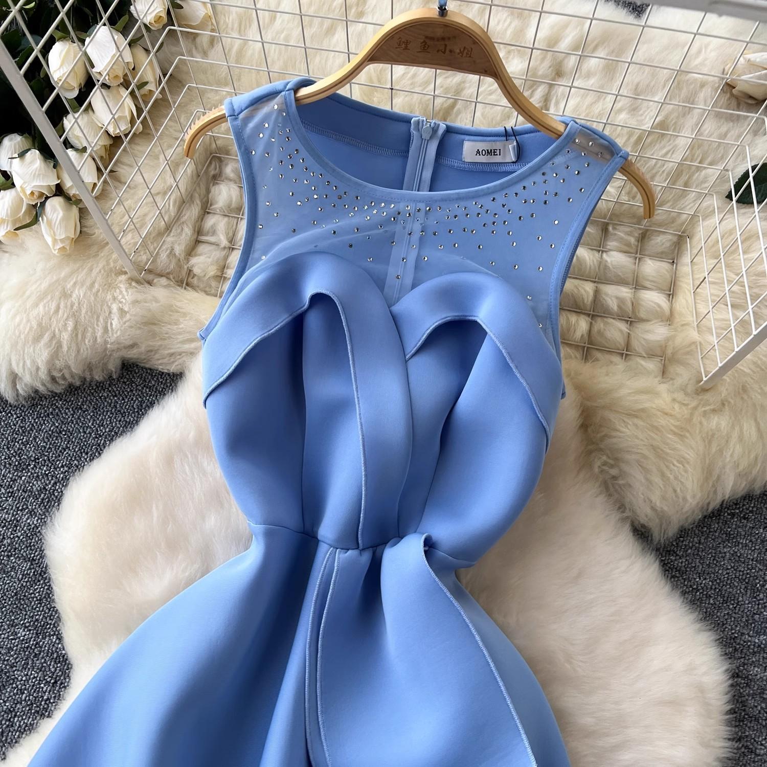 Vestido de mujer con perspectiva sexy de alta sociedad de moda europea y americana, con cinta de malla perforada y cintura adelgazante, con gran vuelo