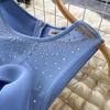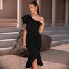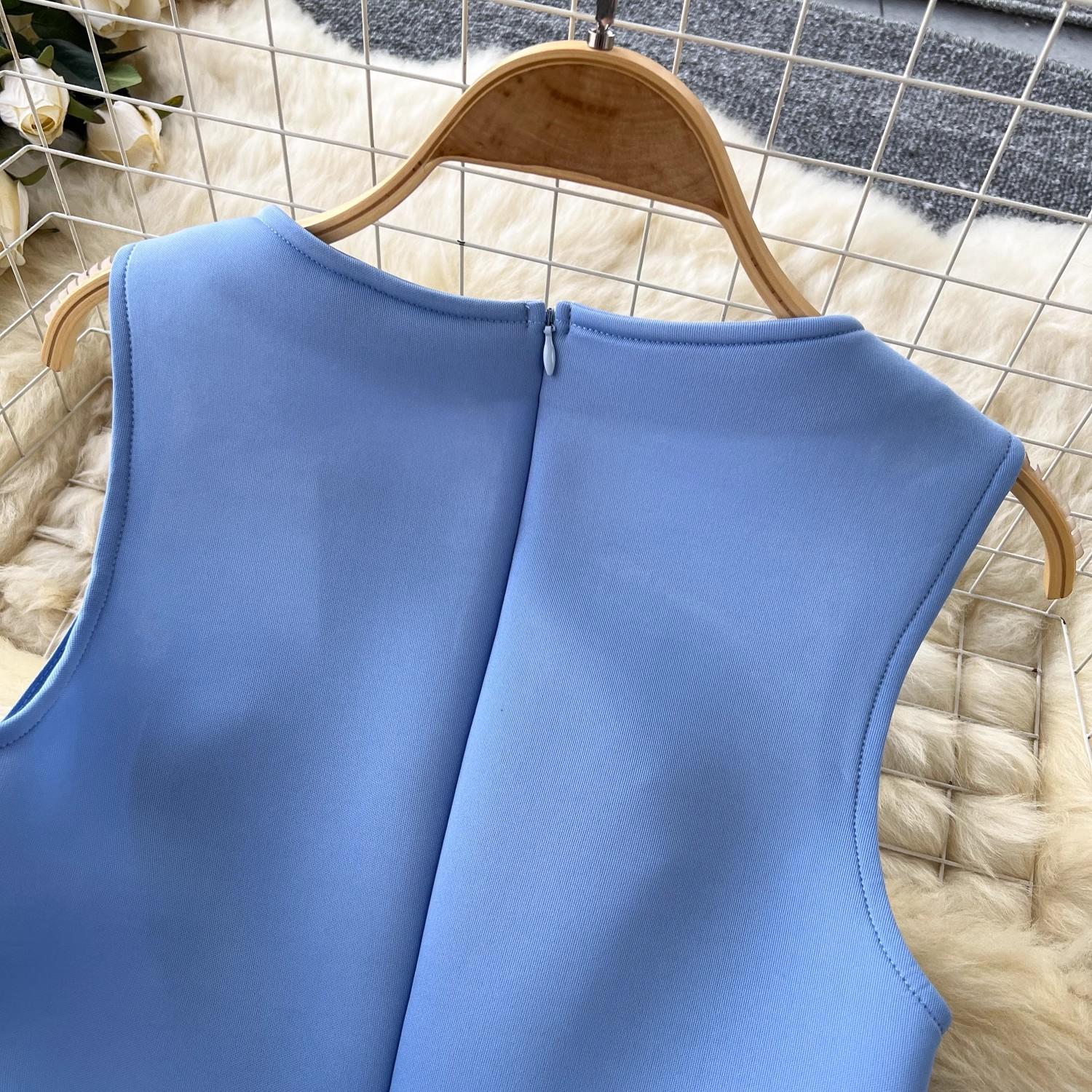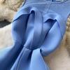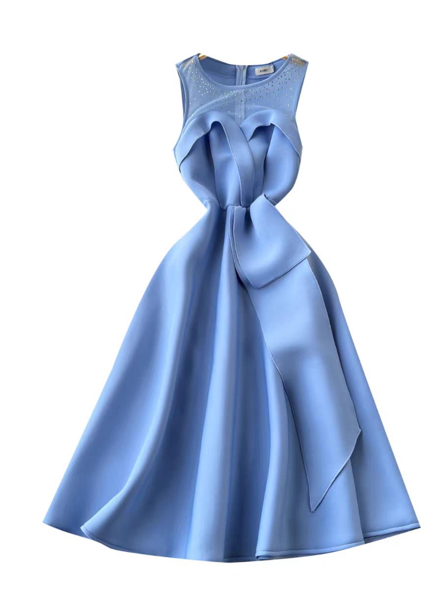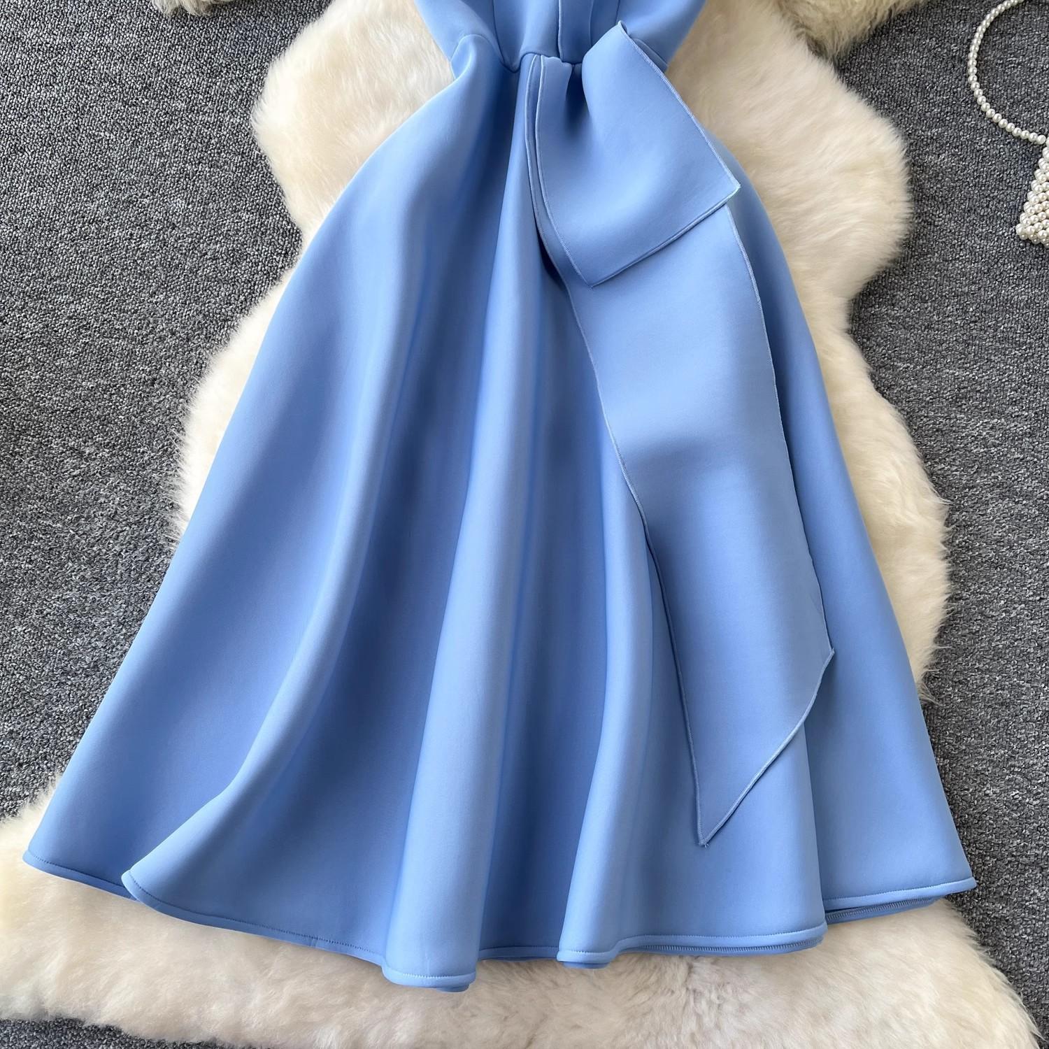 Vestido de mujer con perspectiva sexy de alta sociedad de moda europea y americana, con cinta de malla perforada y cintura adelgazante, con gran vuelo