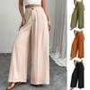 Pantalones casuales de pierna ancha para mujer, nuevos, con bolsillo, ligeros, de cintura alta, con cordones, sueltos y largos, de Amazon, transfronterizos europeos y americanos