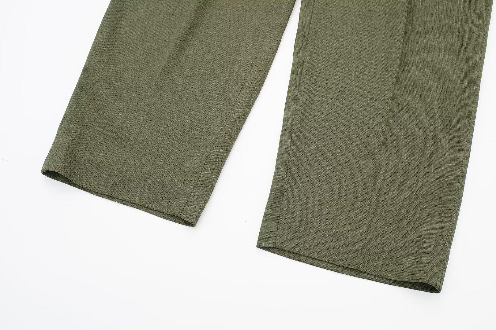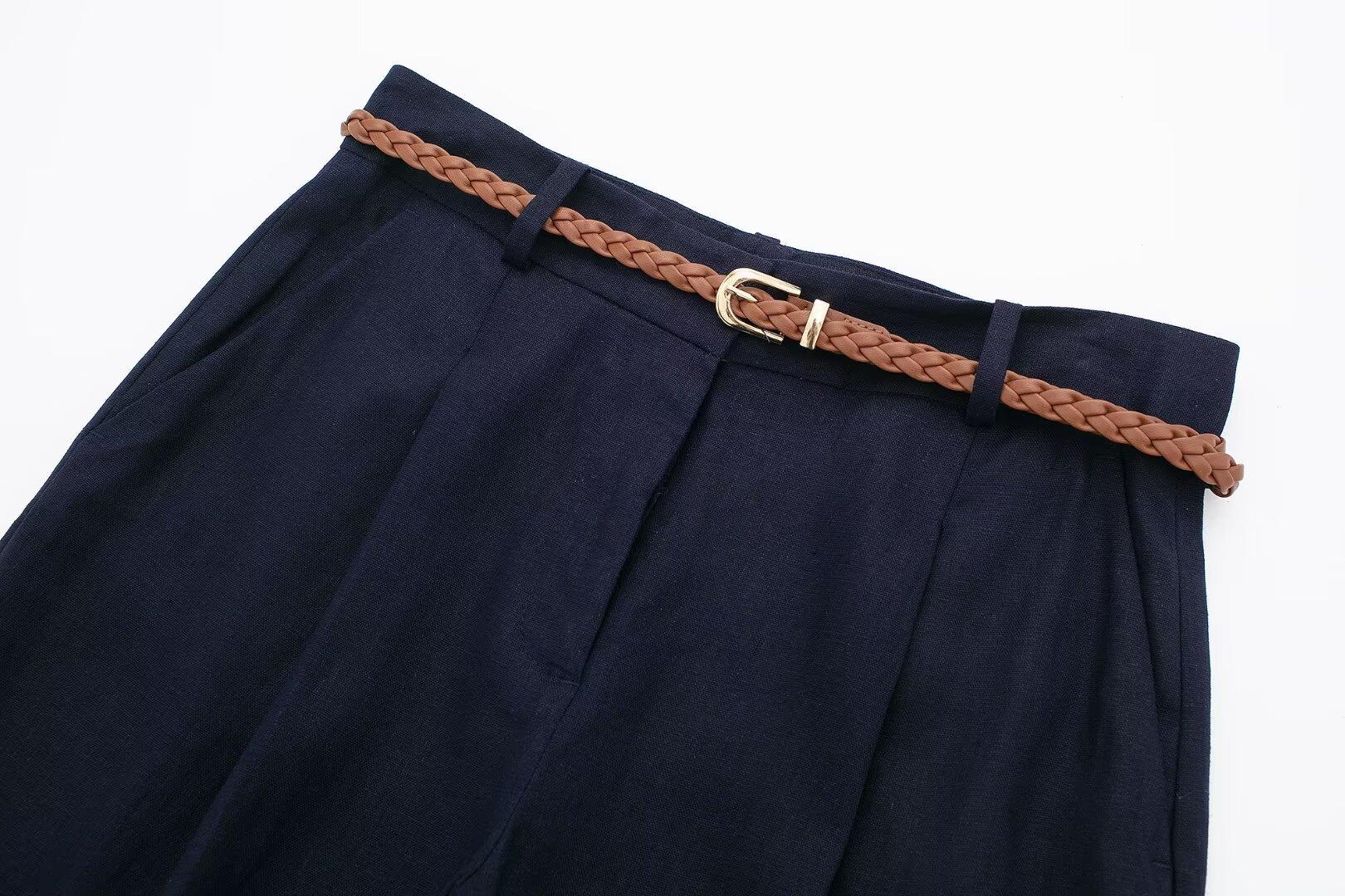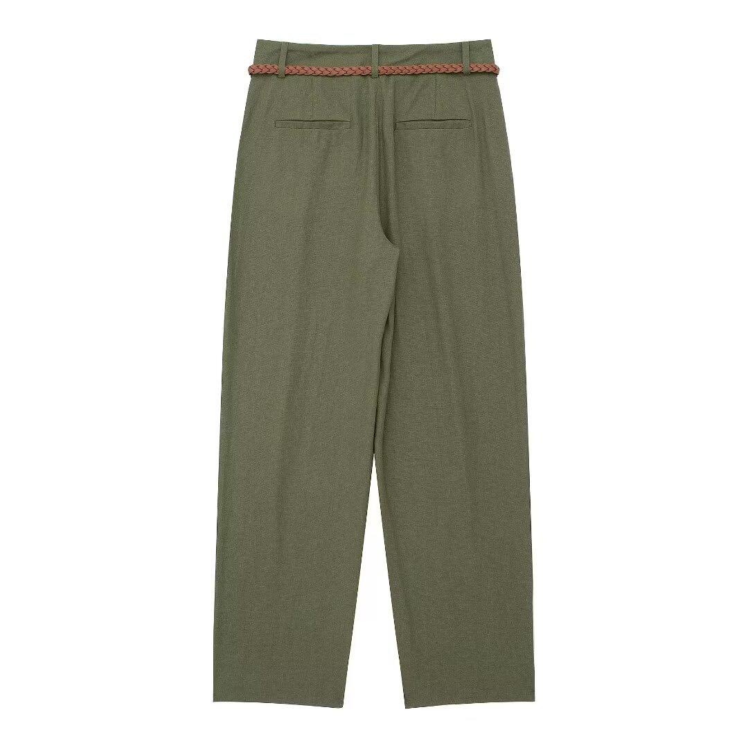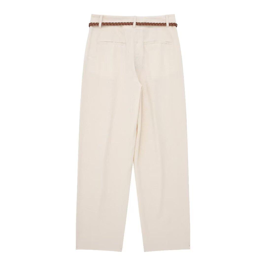 Pantalones rectos de cintura alta con cinturón de lino mezclado, estilo europeo y americano, estilo retro, informal, combinable, para mujer, verano 2024