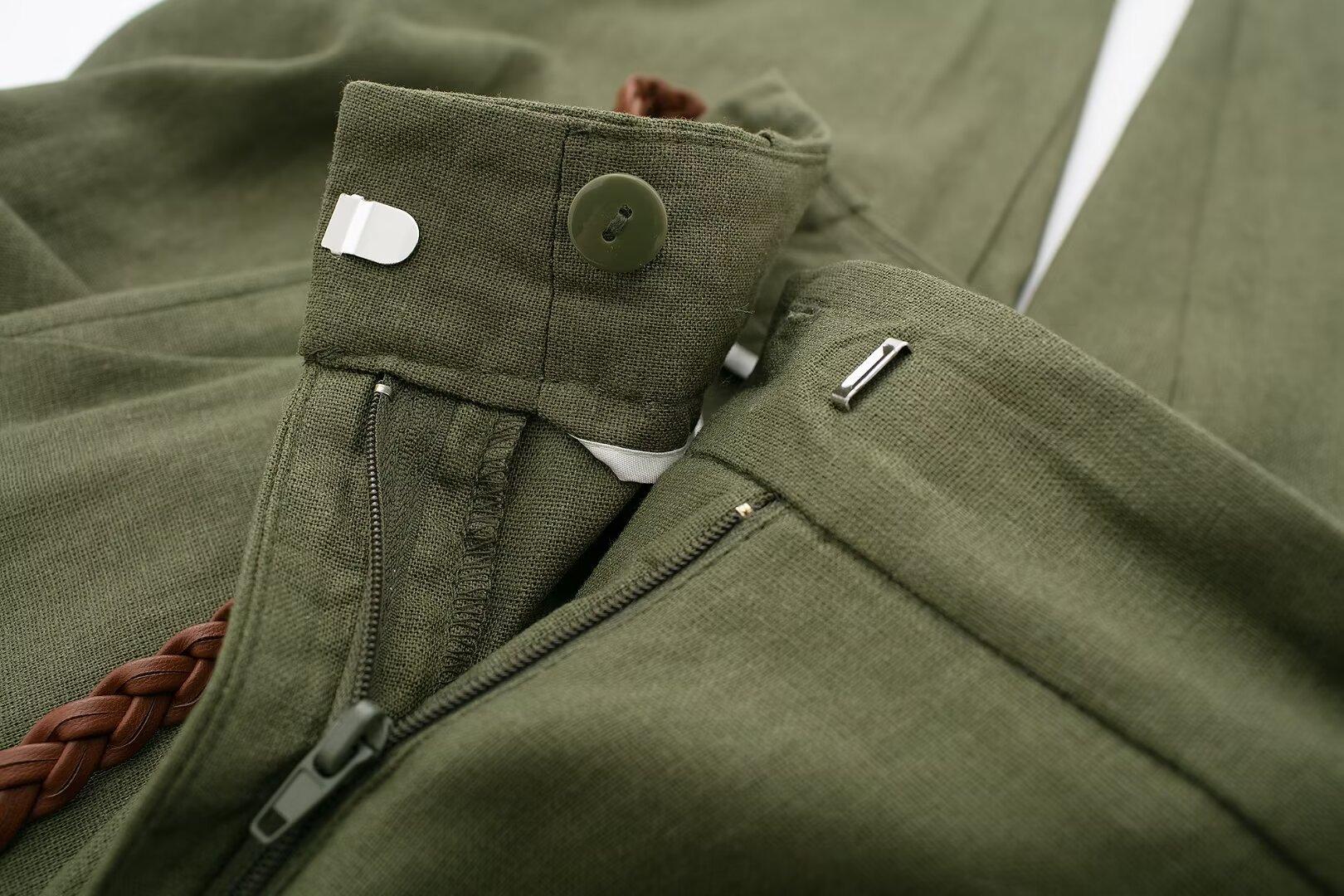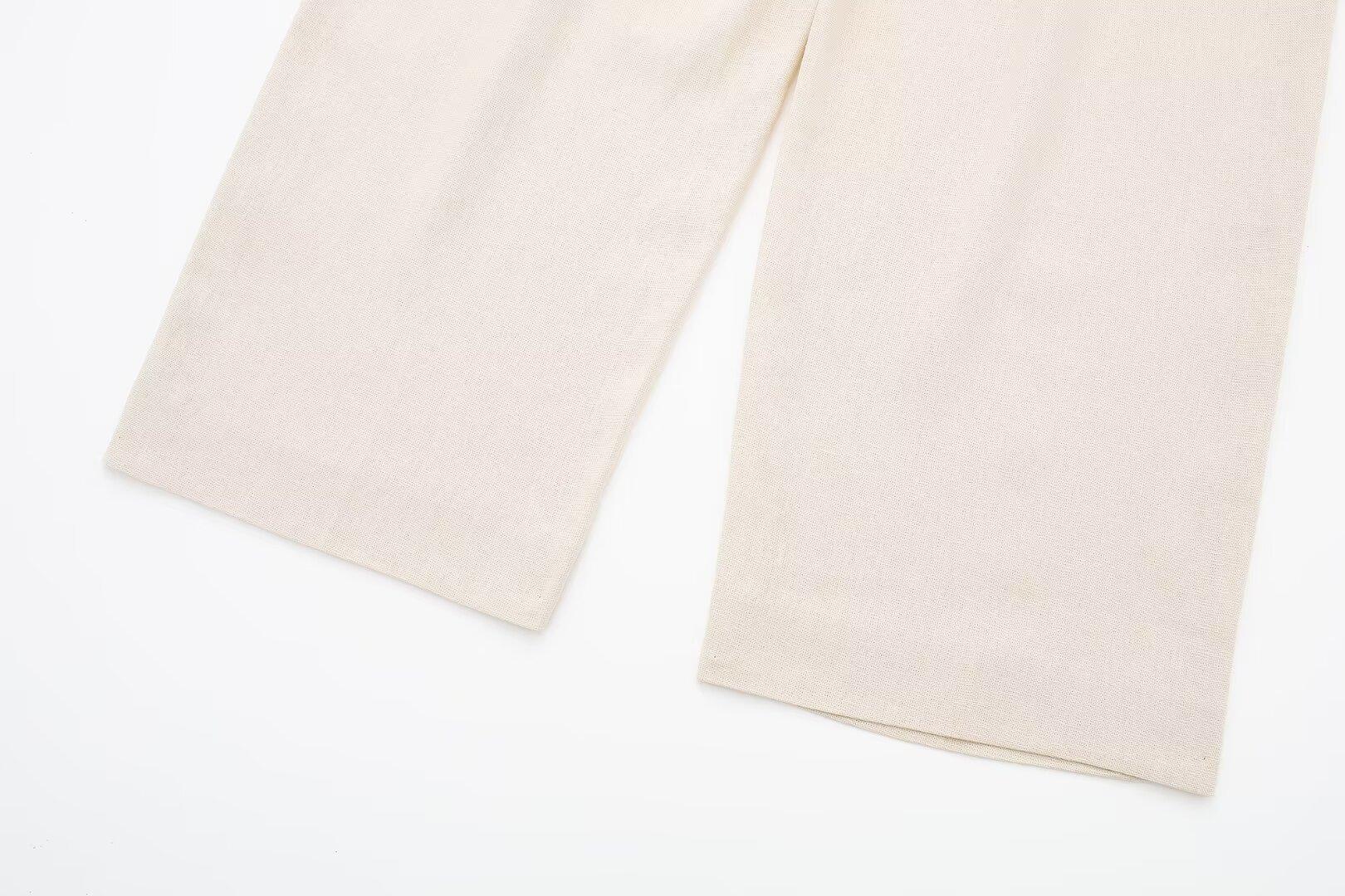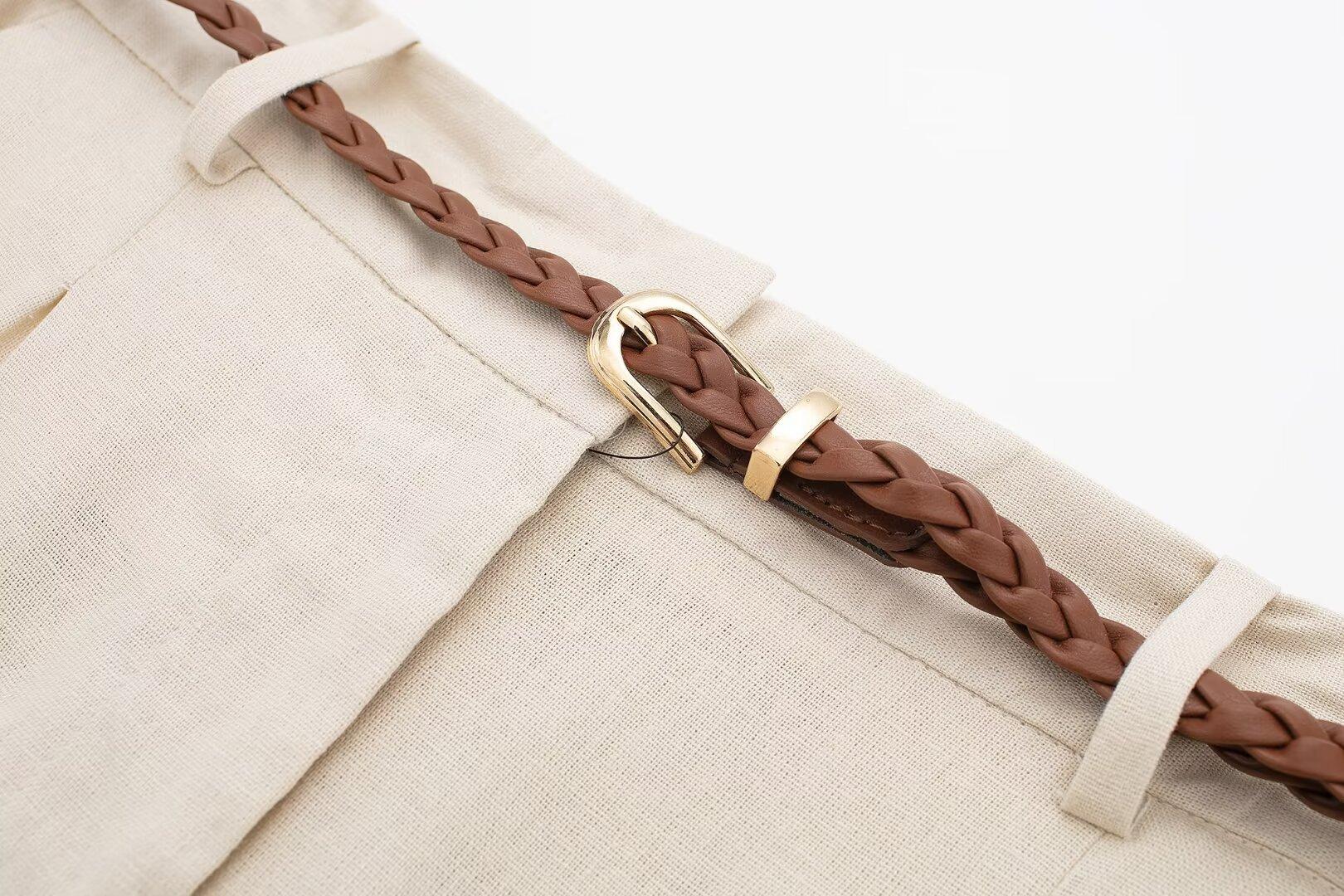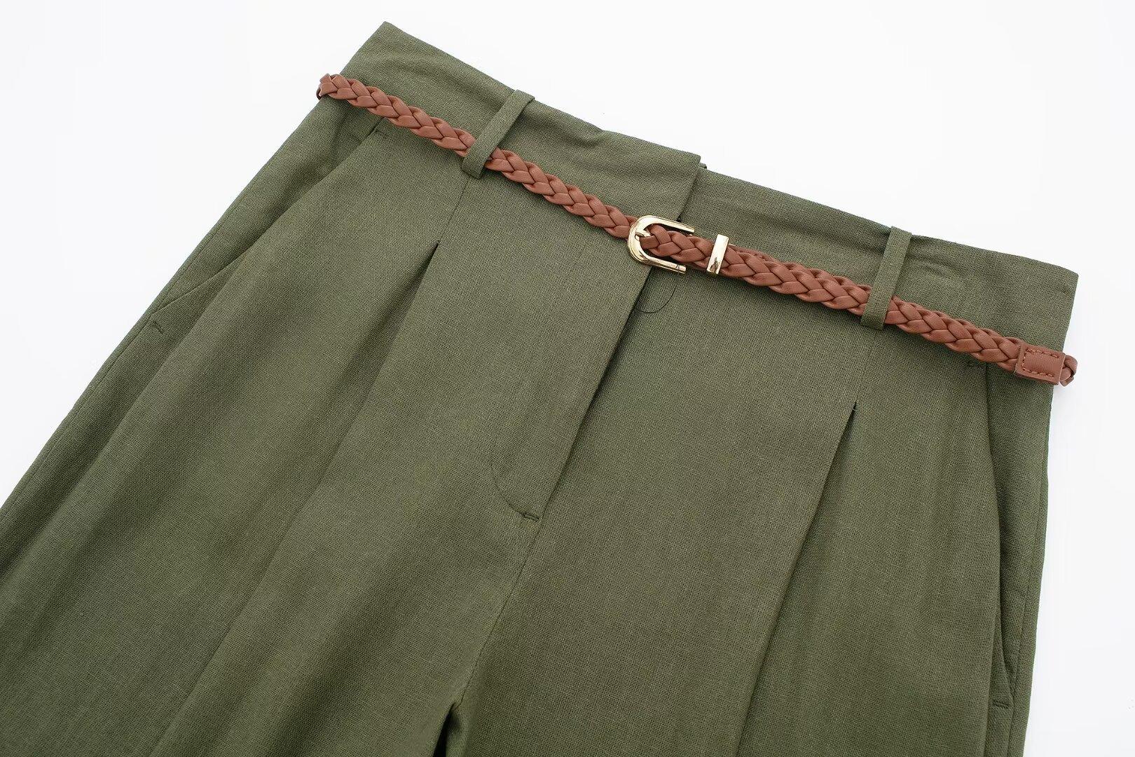 Pantalones rectos de cintura alta con cinturón de lino mezclado, estilo europeo y americano, estilo retro, informal, combinable, para mujer, verano 2024